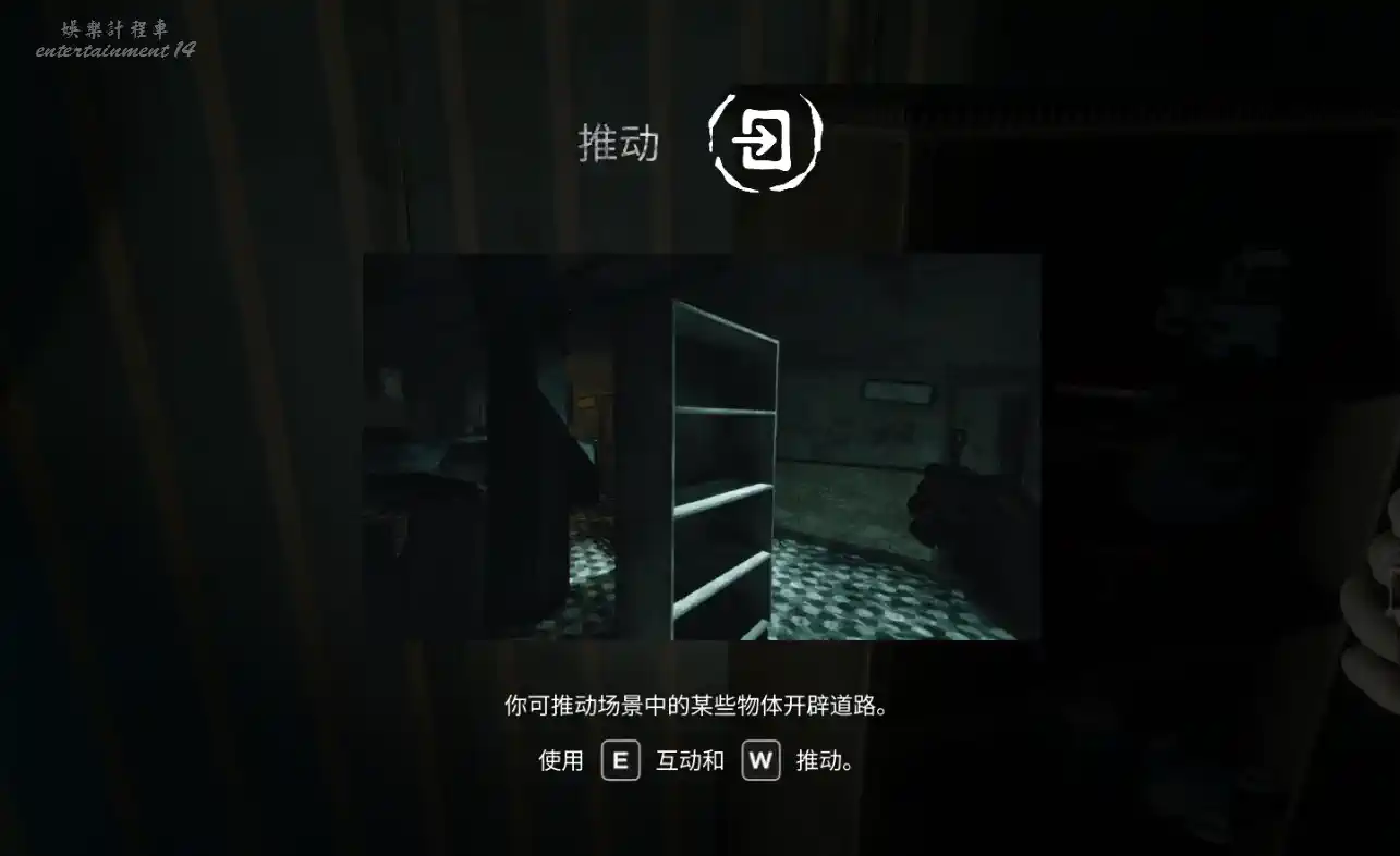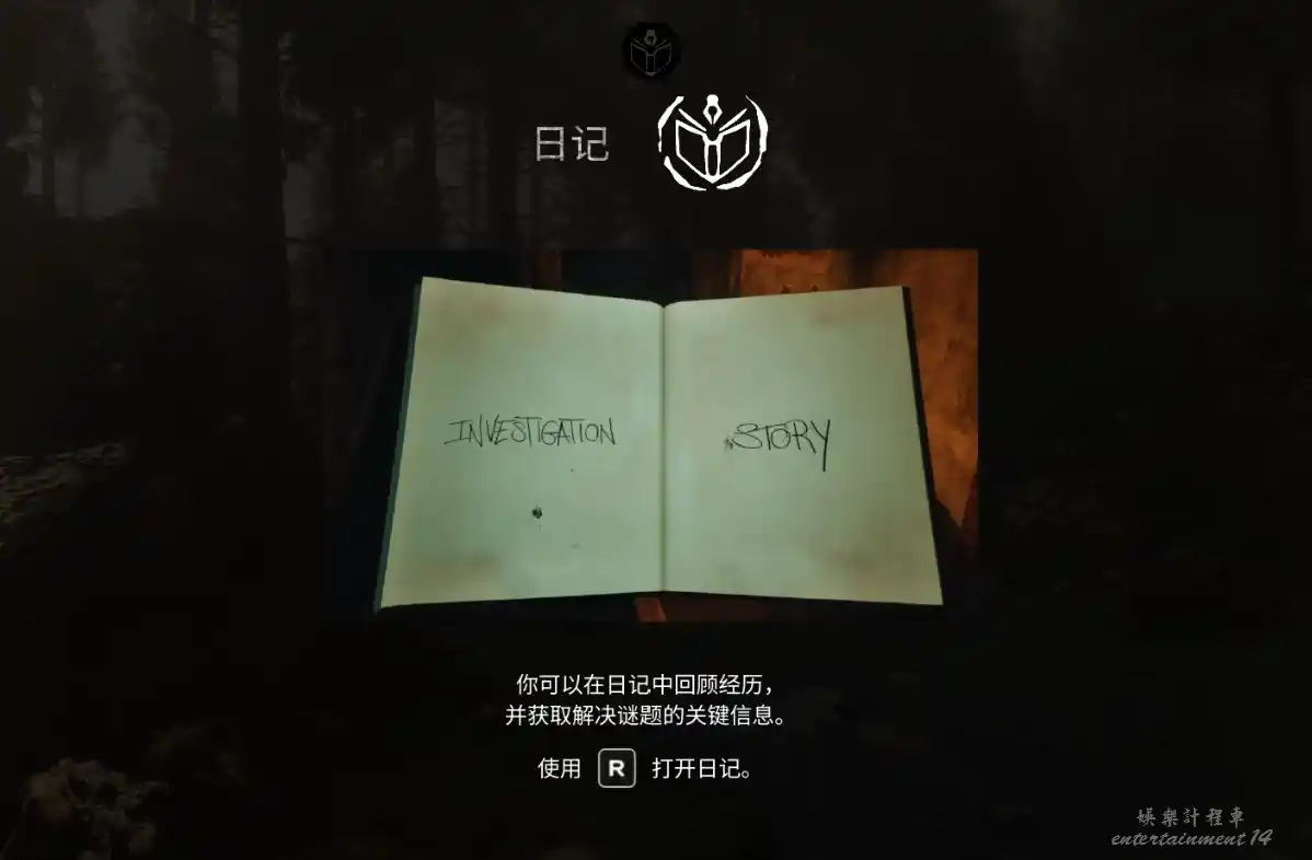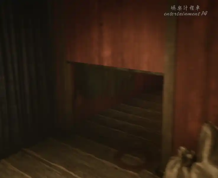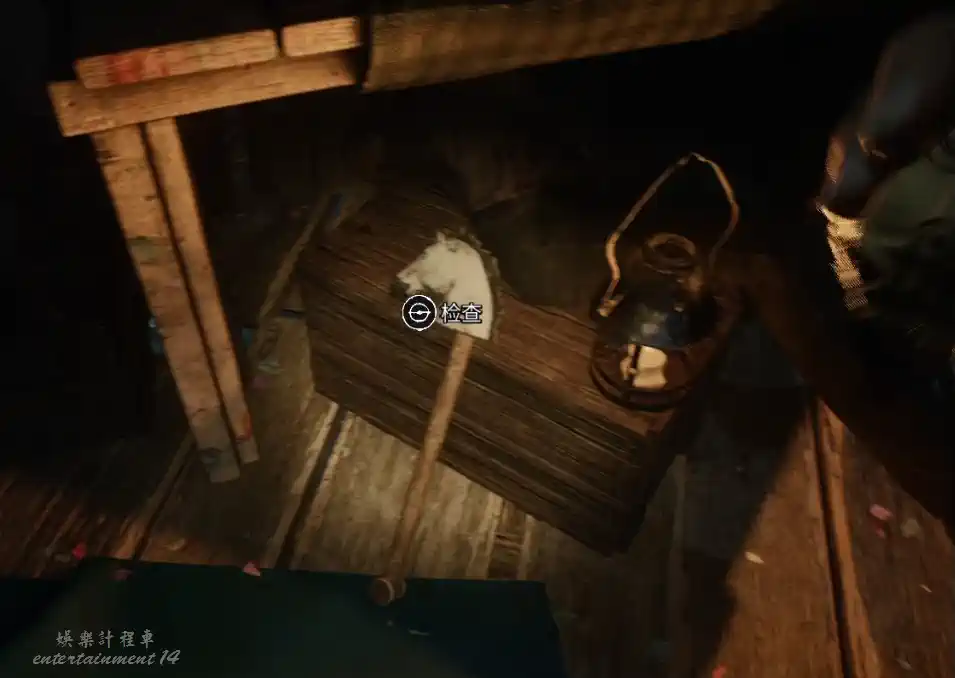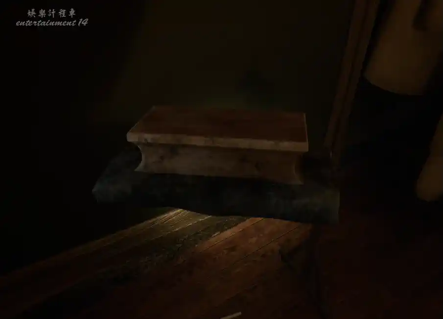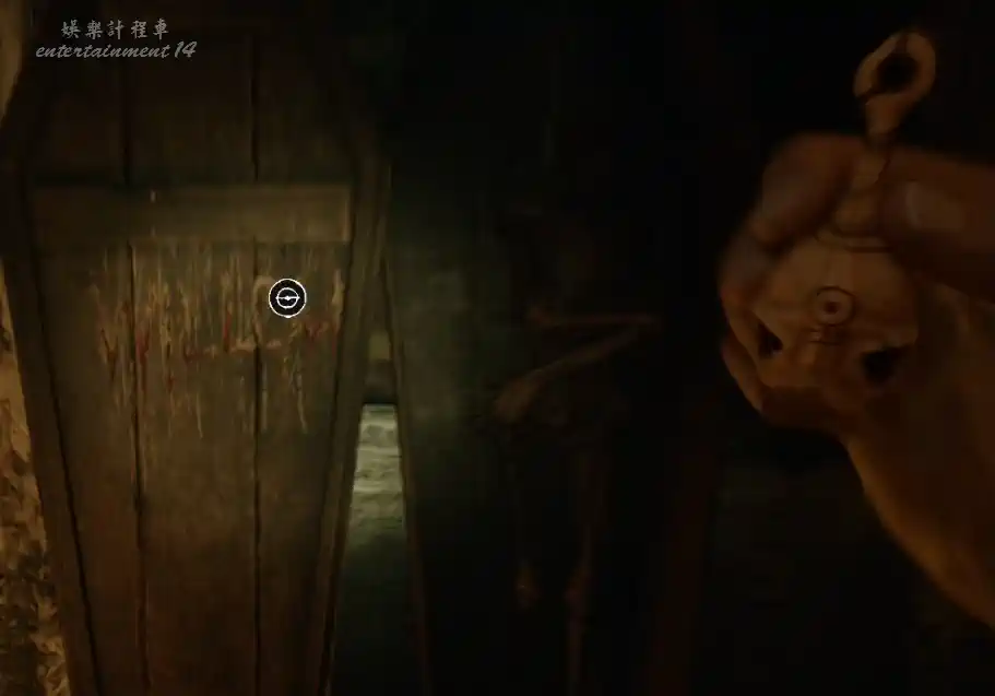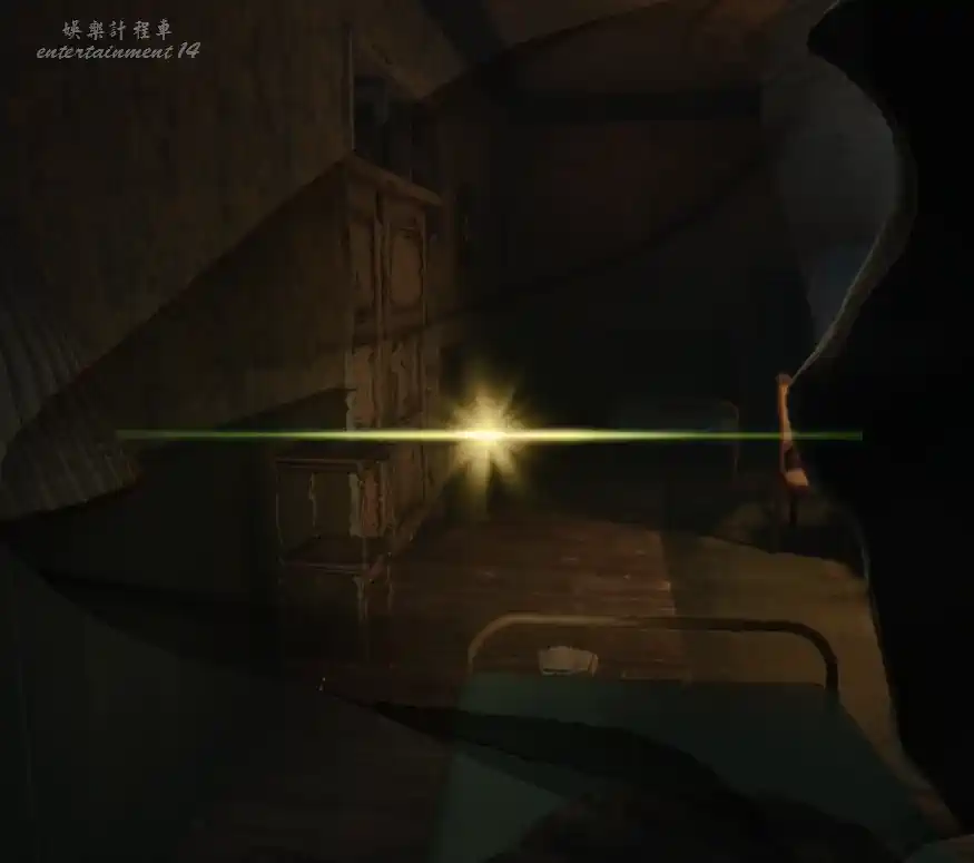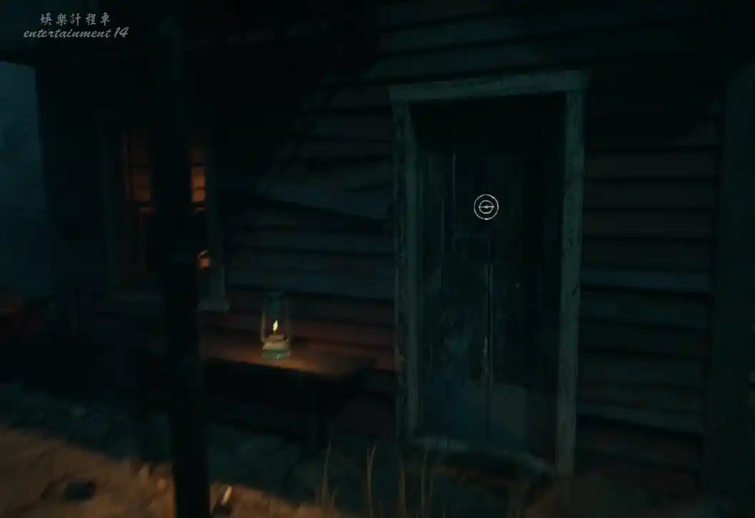 進入小屋後,門會被神秘力量關上,屋子裡面很暗,打開手電筒調查。