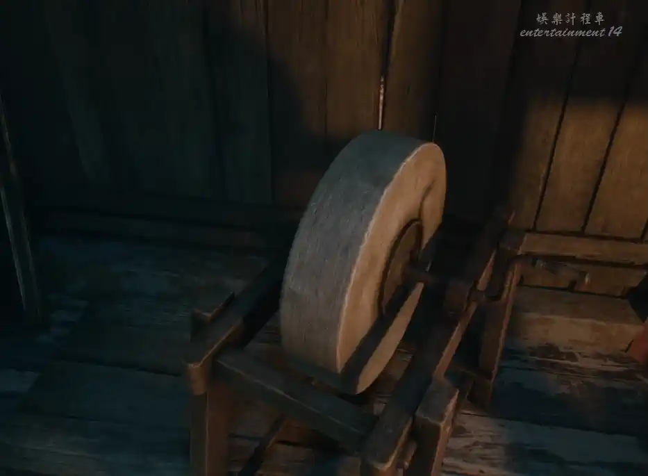 一路向前,看到路牌,然後進入視角左側的屋子,進入低矮通道,拿到草叉。