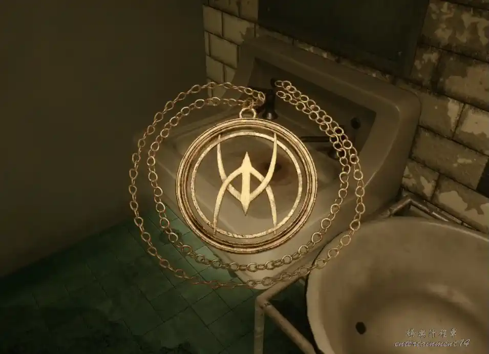 繼續向前,左拐,蹲下向前進入衛生間,發現紙條和第四枚徽章。