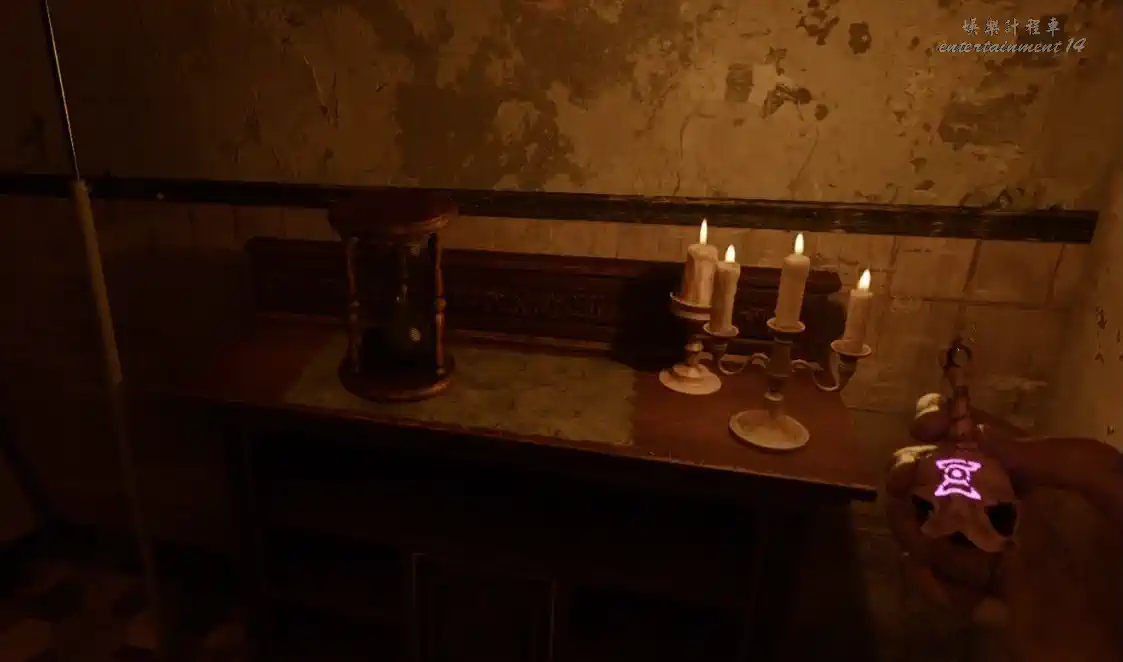 接著探索走廊盡頭三個房間,首先最右側房間,躲開鬼怪後,進入中間房間發現和玩偶相對應的特殊符號,在符號中心放上黑蠟燭,同時需要我們補充完整符號圖案。