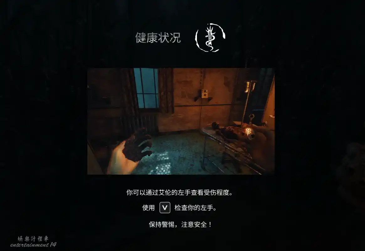 離開小屋後,來到灌木叢,女鬼在附近巡邏,接近女鬼會掉血,玩家可以通過查看左手狀態判斷健康程度。