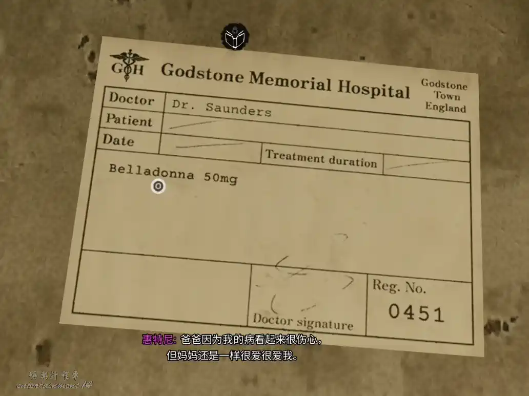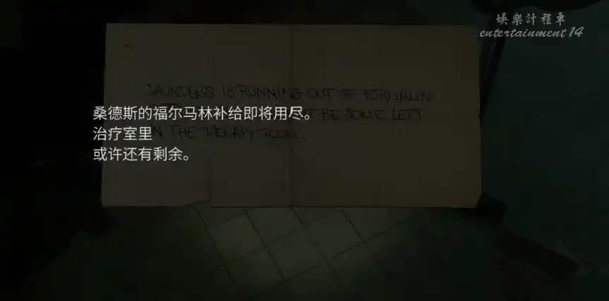 離開藥物間,進入對面房間,搜索後獲得黑板擦和惠特尼的診斷書,得到桑德斯醫生的簡體簽名。