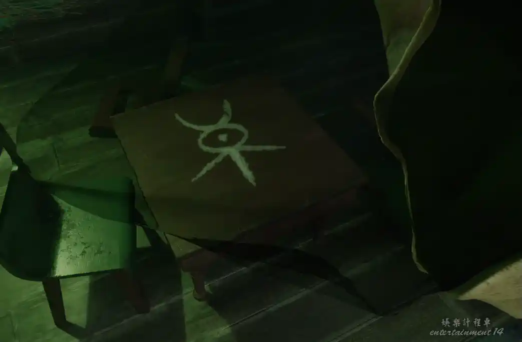 探索另一側房間,發現特殊符號,同時調查兩個縫隙房間,可以獲得粉筆。
