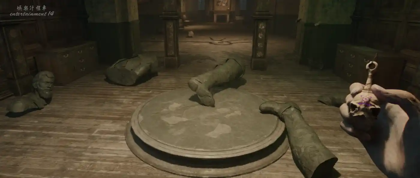 離開房間,回到之前可以看到撬棍的視窗,使用渡鴉之翼獲得撬棍,進入藏有撬棍的房間探索後獲得雕像左手殘件。