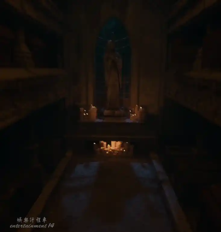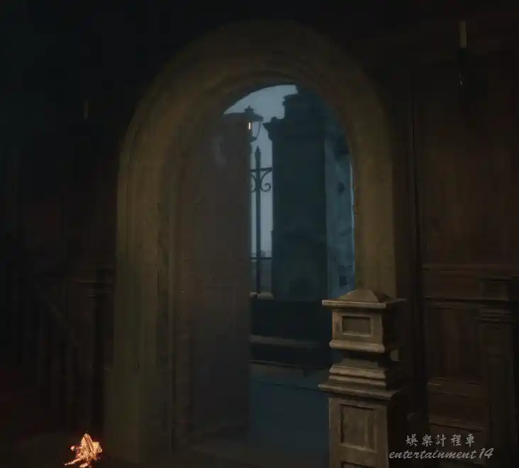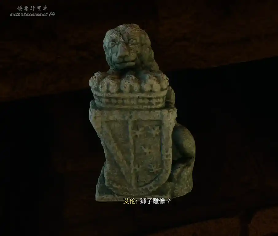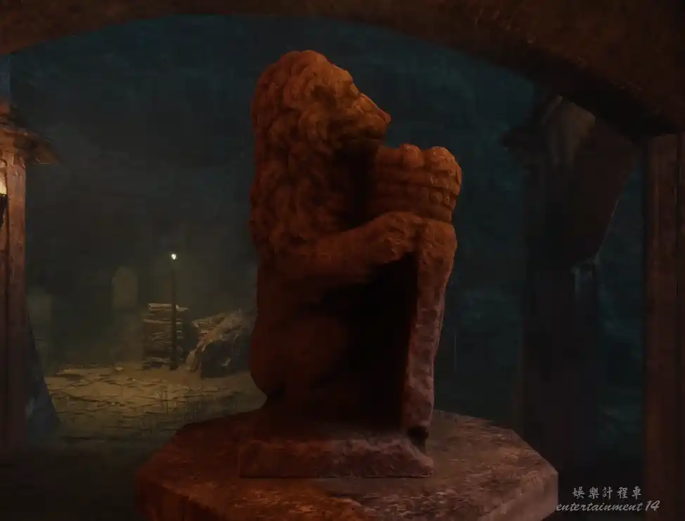 回到墓園教堂前,在石柱上擺放石獅子,並使用真實視界對照,擺正位置。擺放正確後,教堂兩側的鐵門打開。