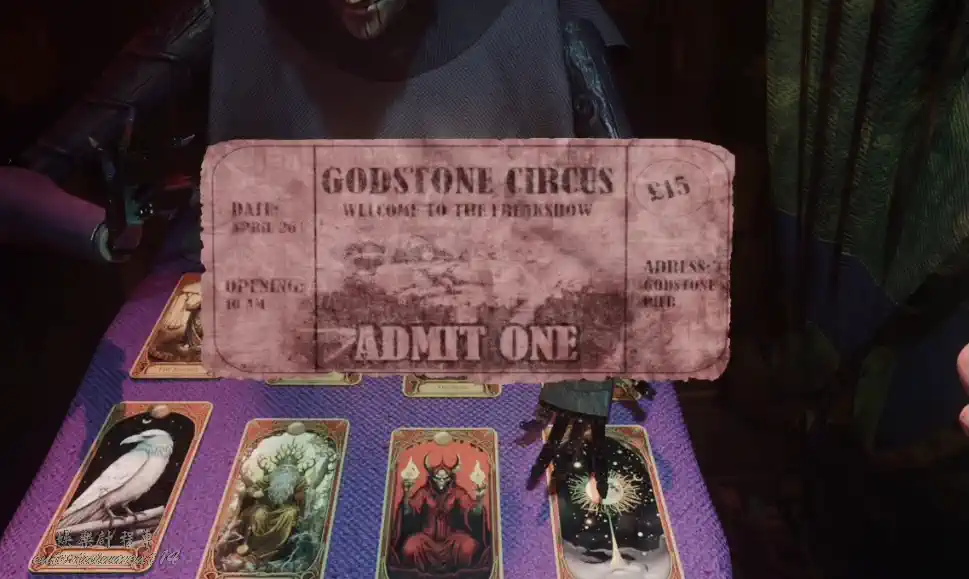 離開孤兒院後,進入馬戲團,來到分叉口,首先向右進行占卜,進行三次選擇,第一次是教皇,第二次是高塔。第三次是死亡。完成占卜後獲得紅色門票,同時回頭獲得殘缺手臂。