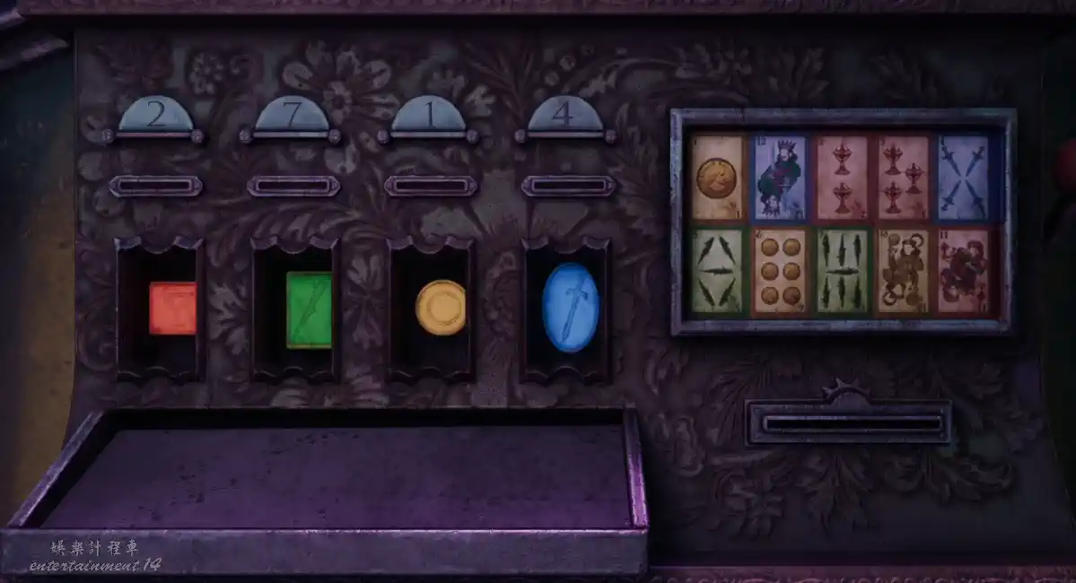 集齊四個代幣後,來到兌換機,根據對應的數位顏色,放入對應顏色的代幣,最後獲得主演出門票。