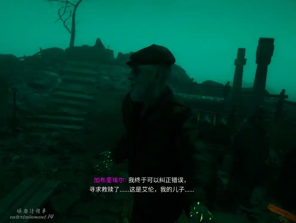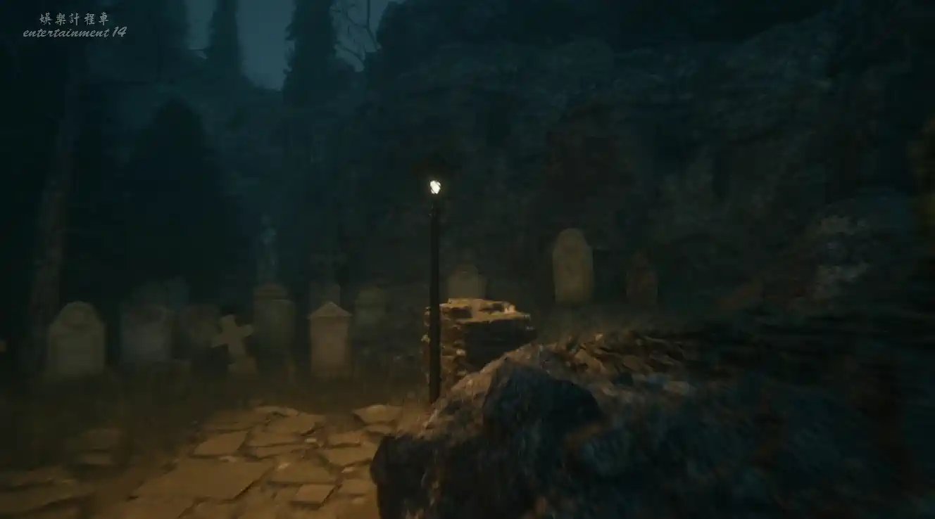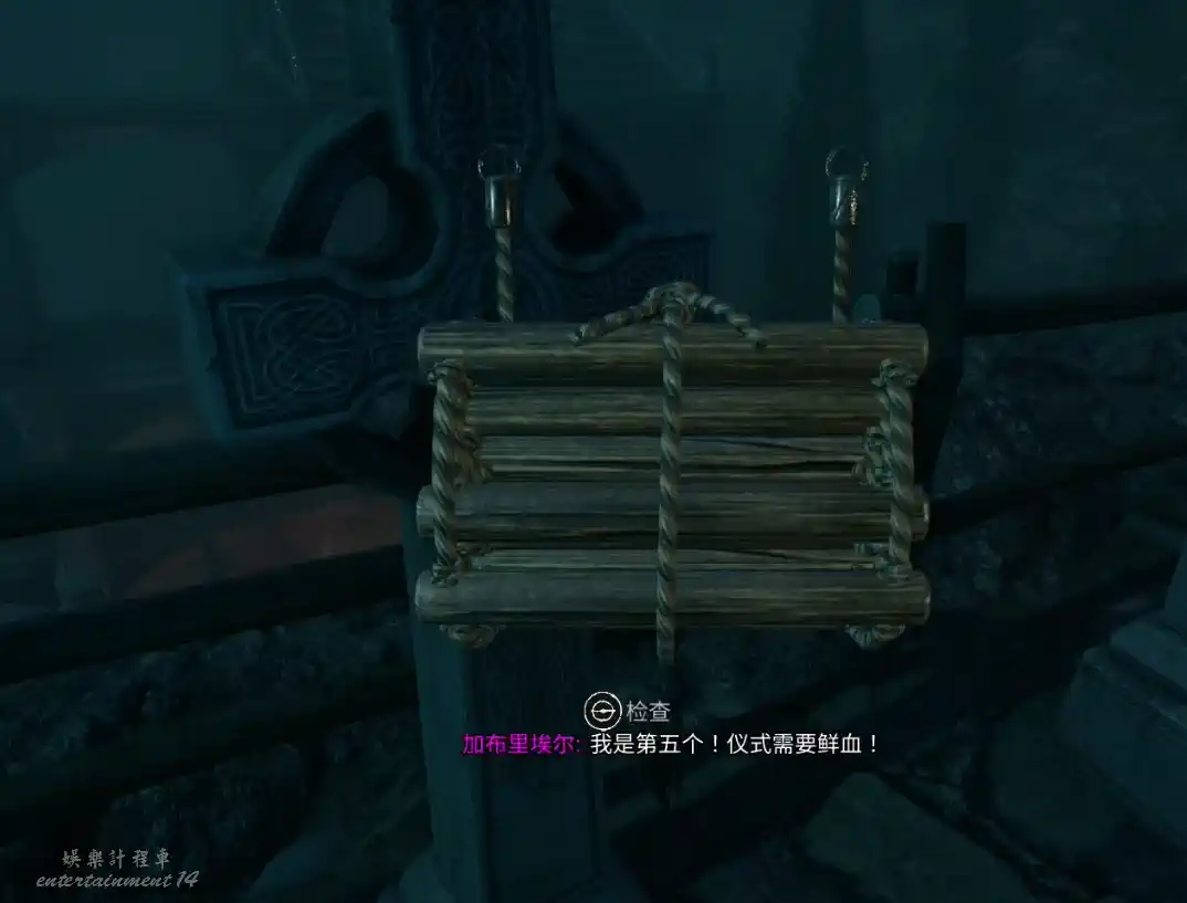 在道路盡頭的十字架墓碑上獲得繩梯,同時在兩個棺材裡分別獲得第三個石獅子和第二條人名提示。