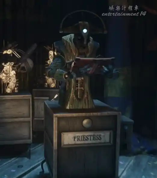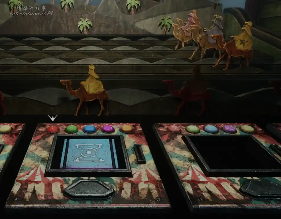回到分叉口,使用紅色門票進入左側入口,根據不同的指責給玩偶替換不同的手臂,替換完後,推開擋住的玩偶,進入馬戲團。