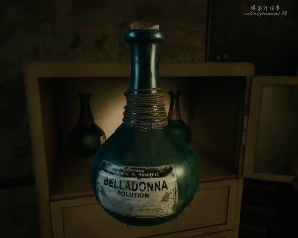 探索衛生間隔壁的藥物儲存室,發現裝有顛茄提取液的櫃子,但是缺少處方單。