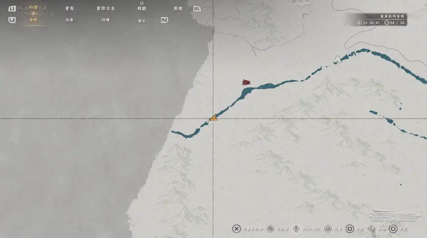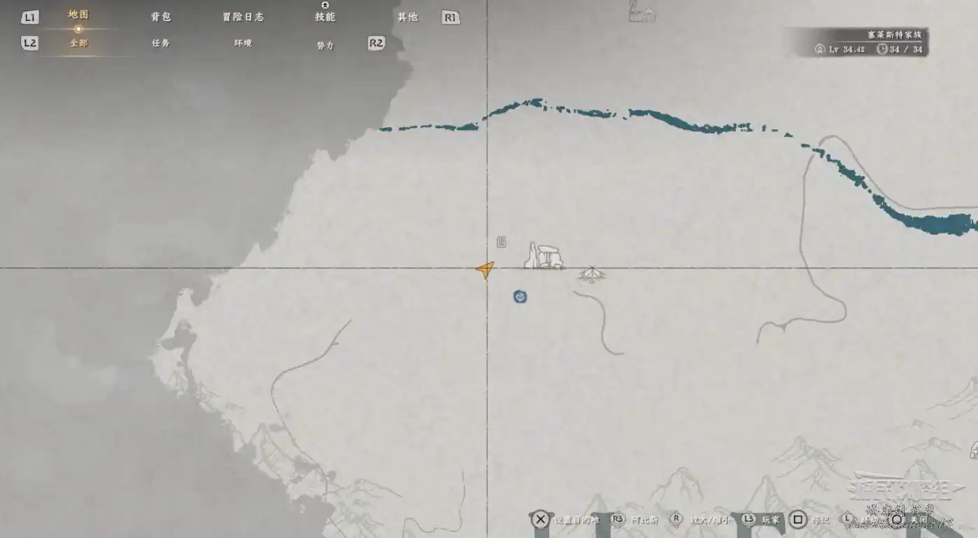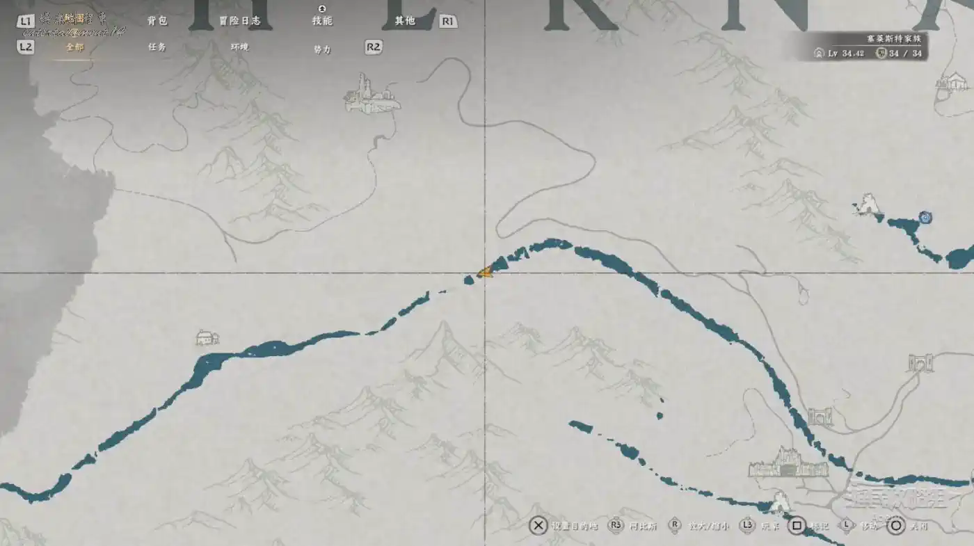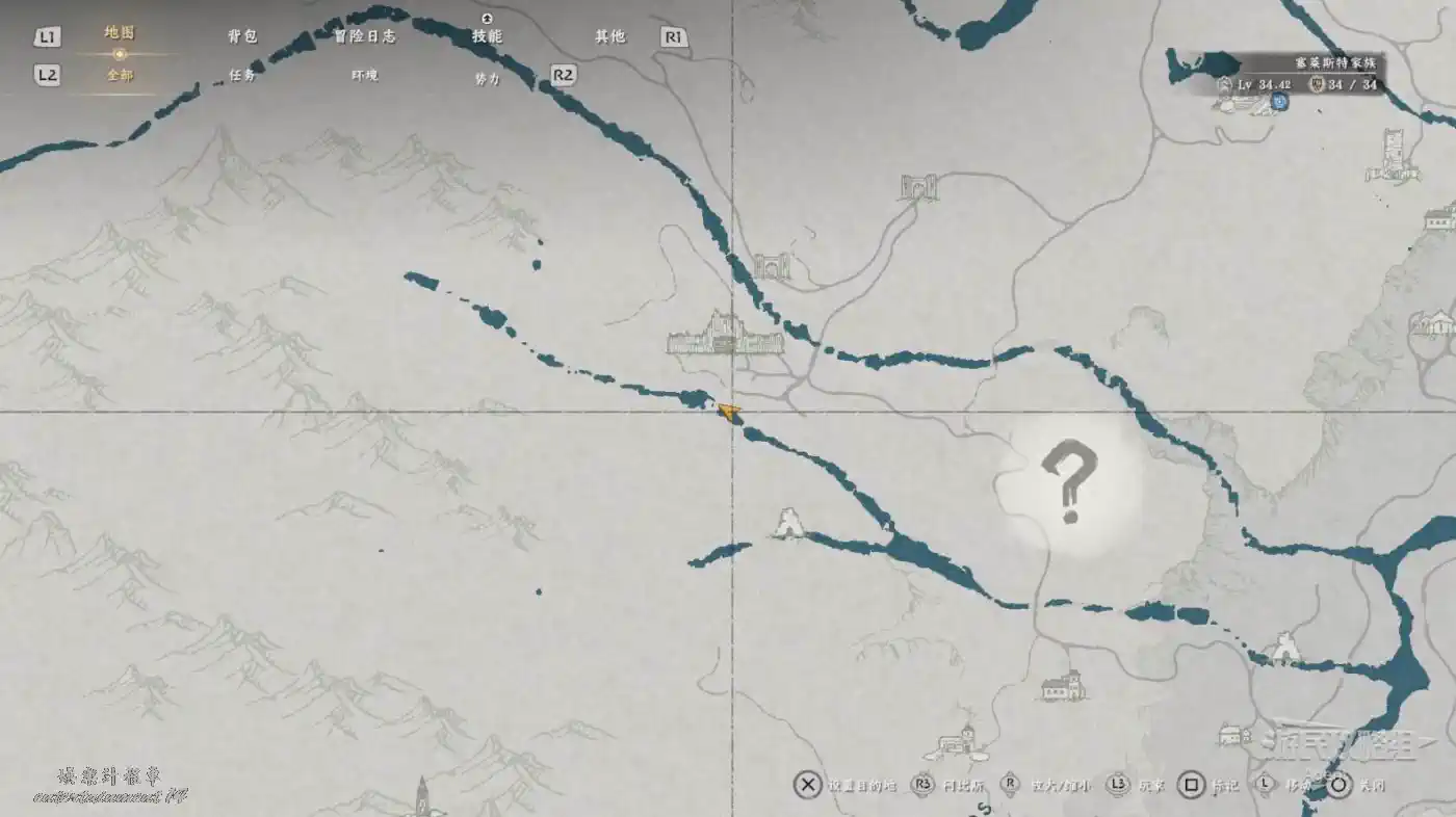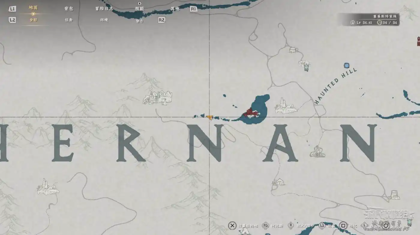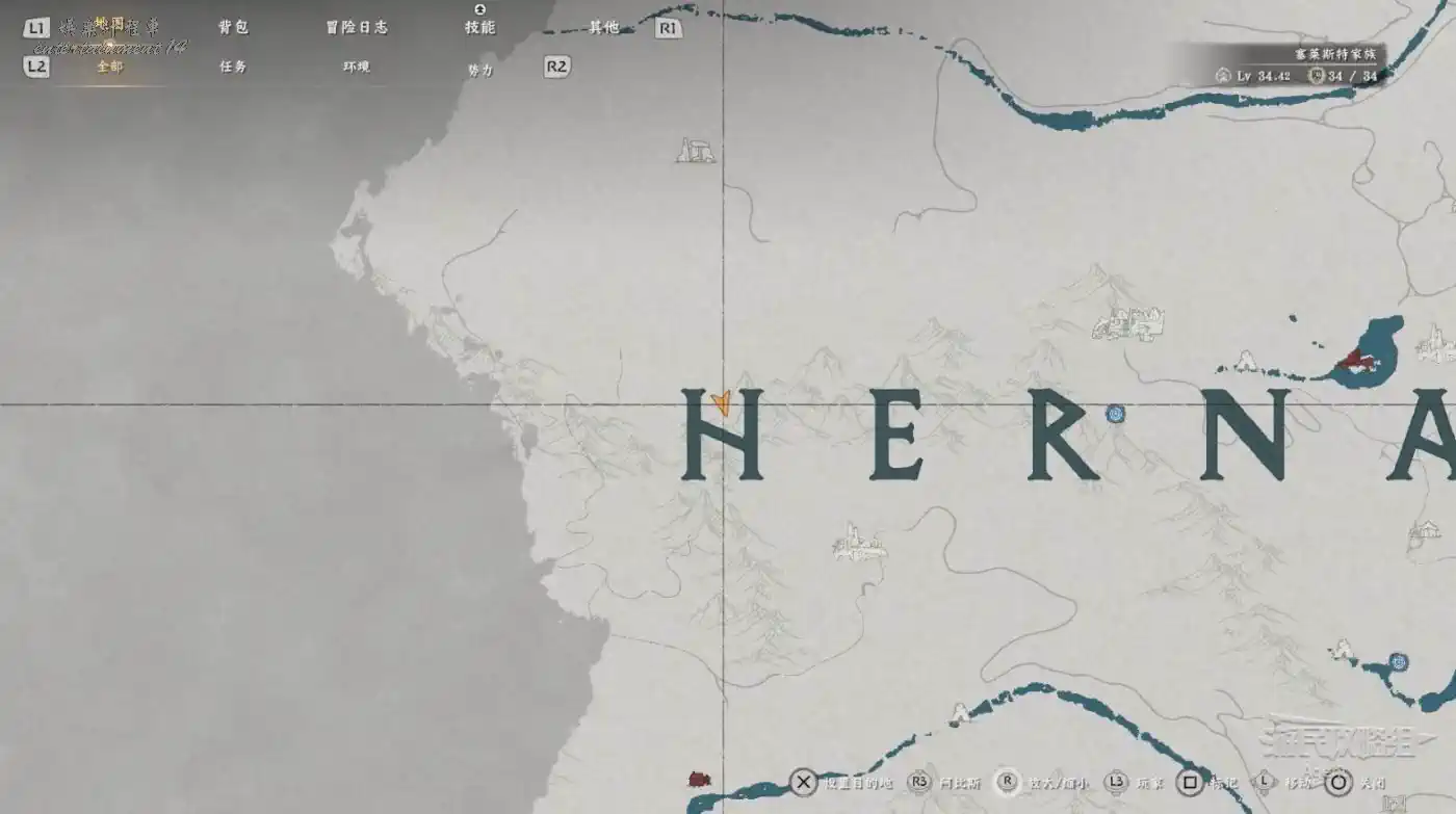 在埃爾南德南面下圖位置,用刺擊進入瀑布後面的洞窟,開寶箱拿到【暗巷統治者布制頭盔】。