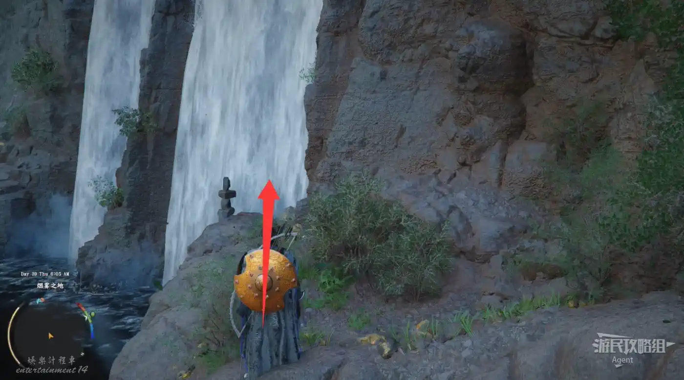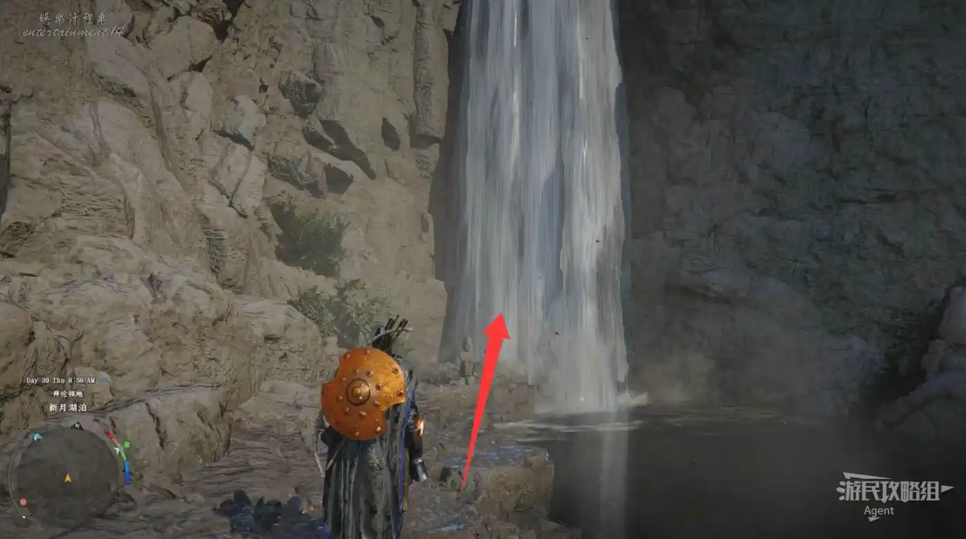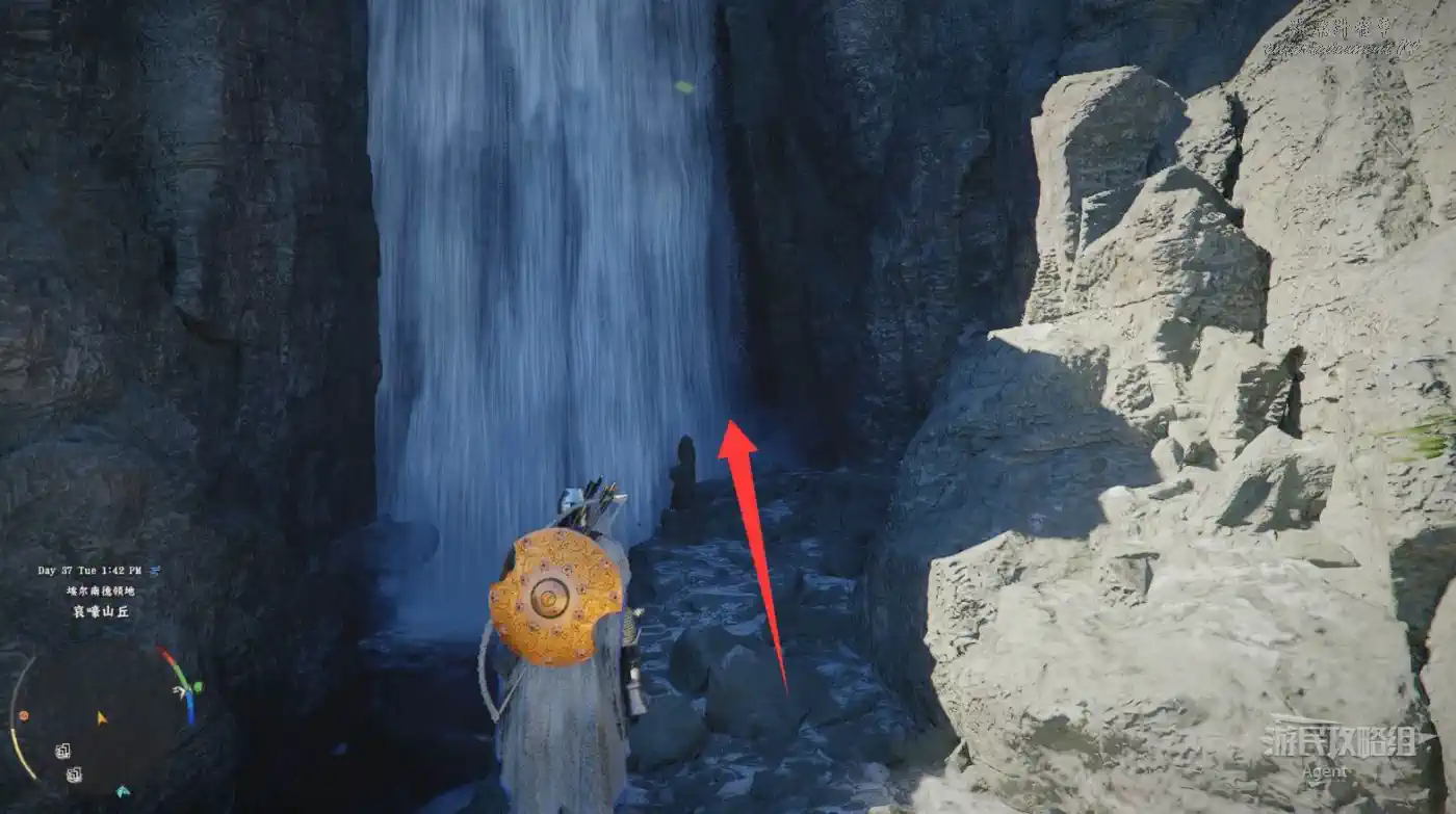 在埃爾南德下圖位置,用刺擊進入瀑布後面的洞窟,開寶箱拿到【失落王國的板金手套】。