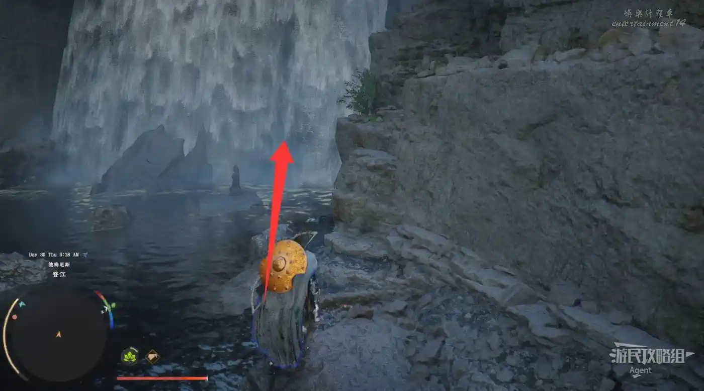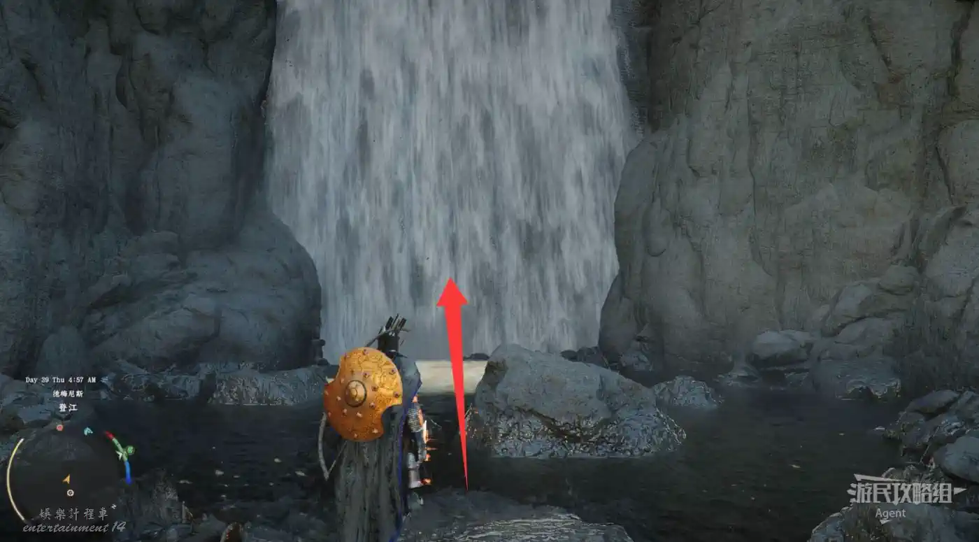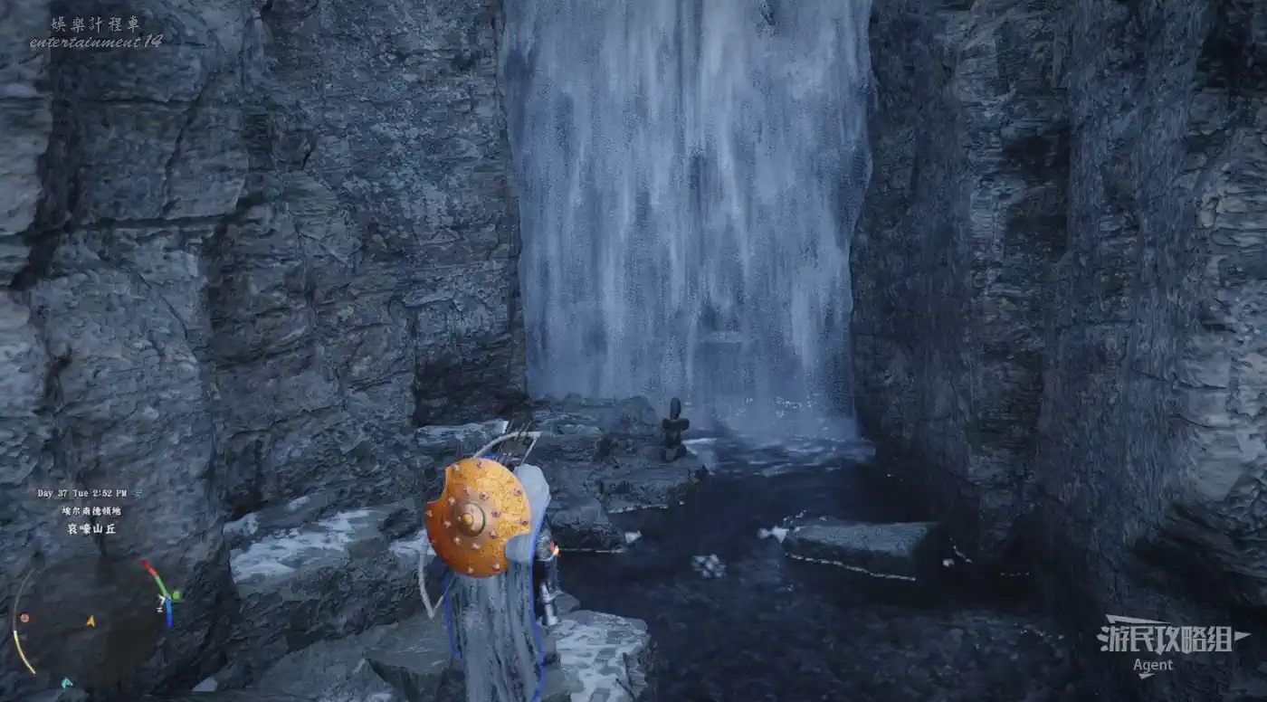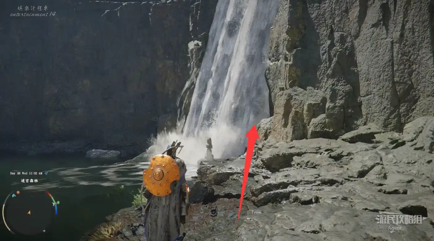 在埃爾南德下圖位置,用刺擊進入瀑布後面的洞窟,開寶箱拿到【失落王國的皮制盔甲】。
