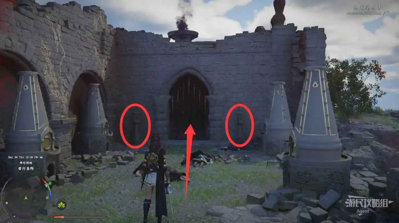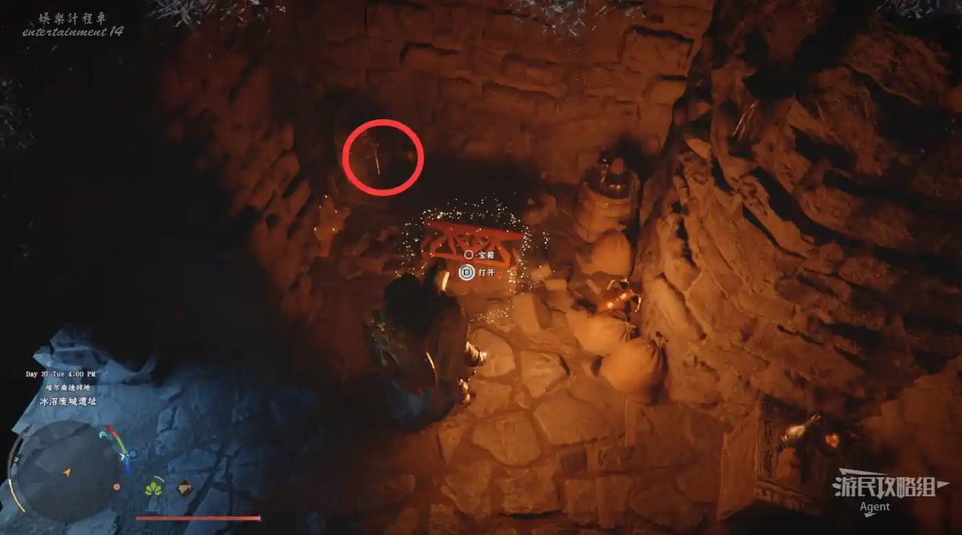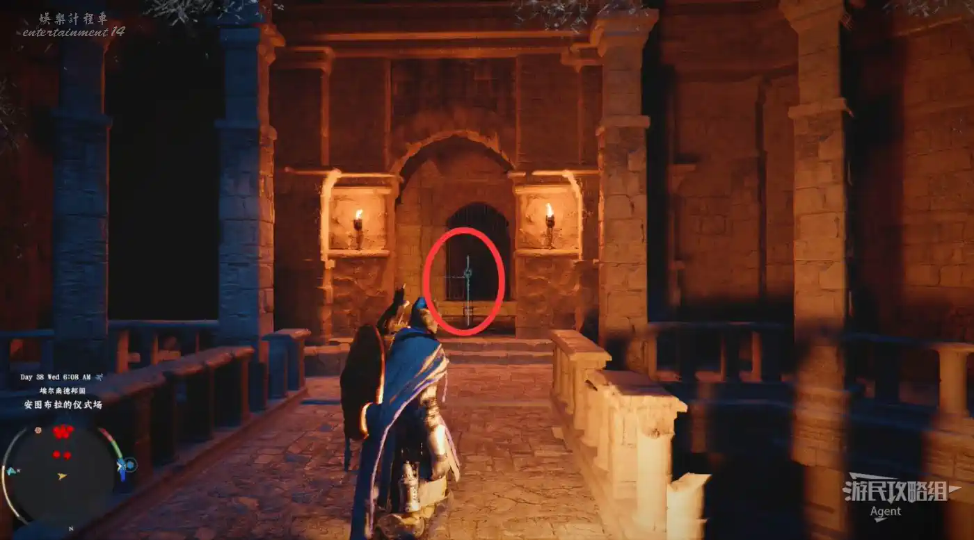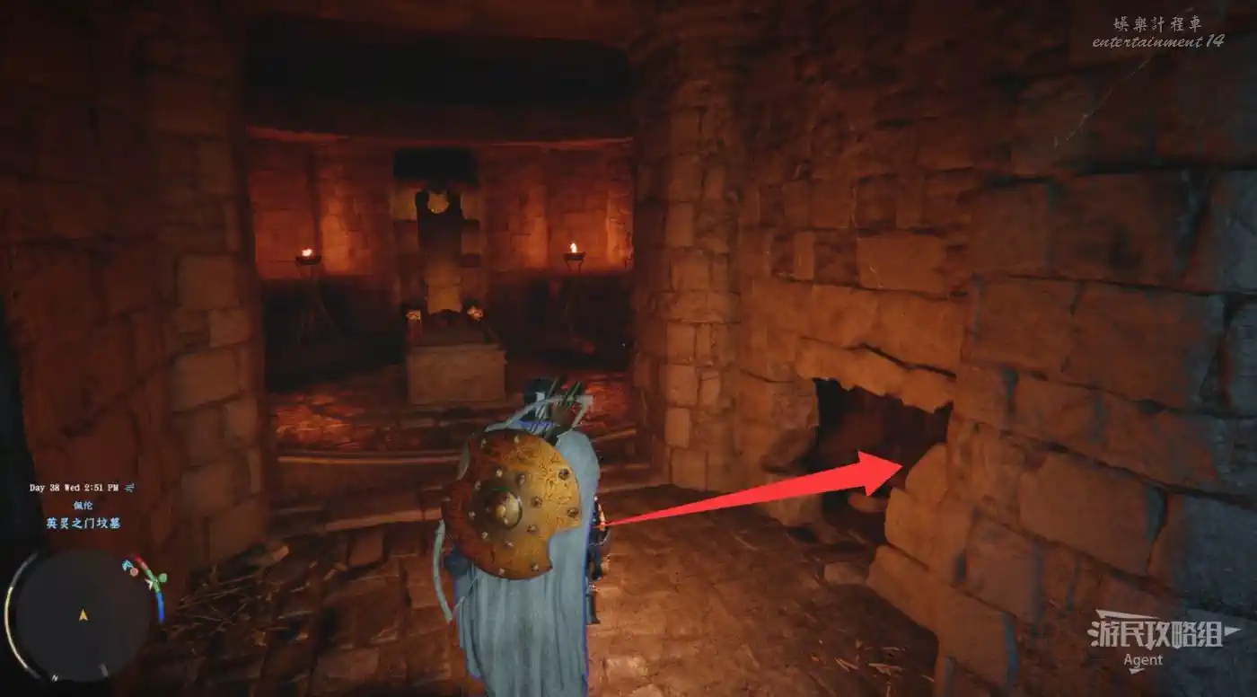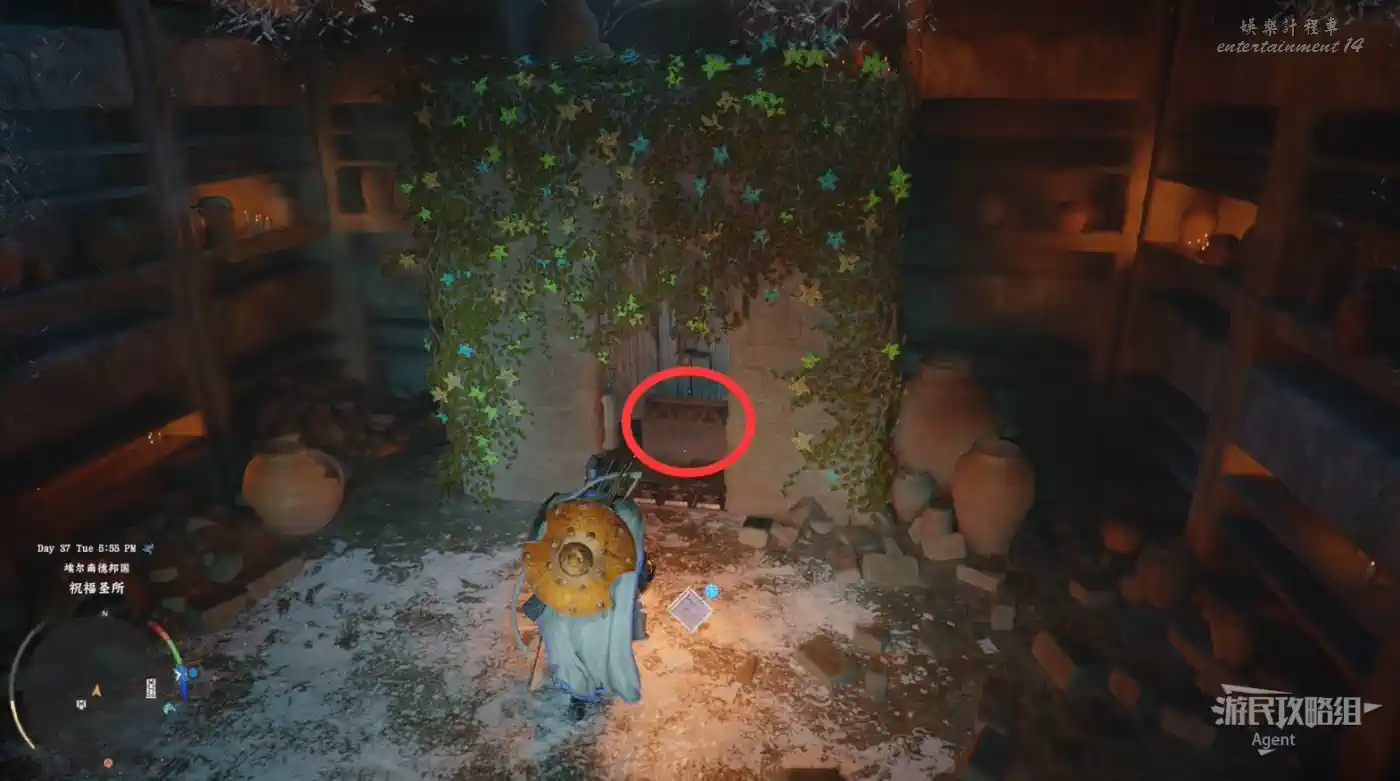 在埃爾南德下圖位置,點燃門口的燈籠,開門進去拿到寶箱裡的【失落王國的皮制頭盔】。