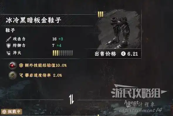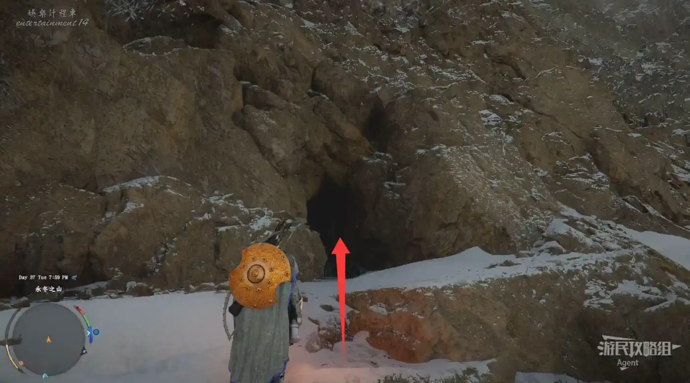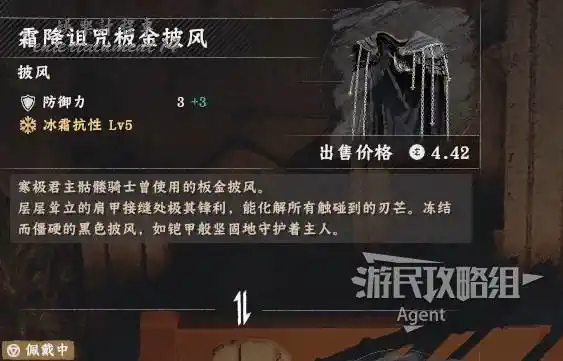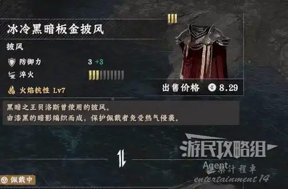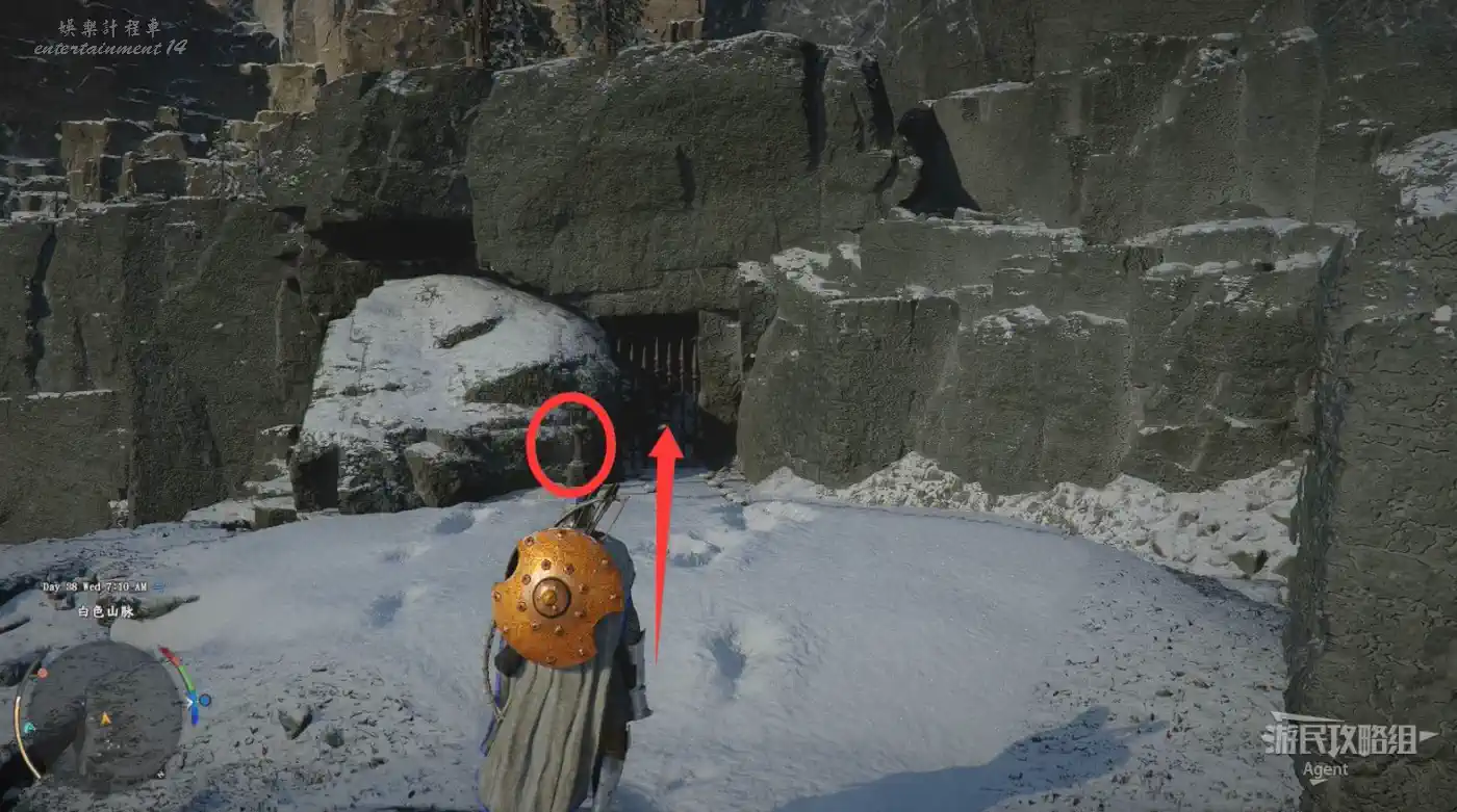 在埃爾南德下圖位置,雪山哨崗西南,點燃燈籠開門,進去拿到寶箱裡的【冰冷黑暗板金盔甲】。