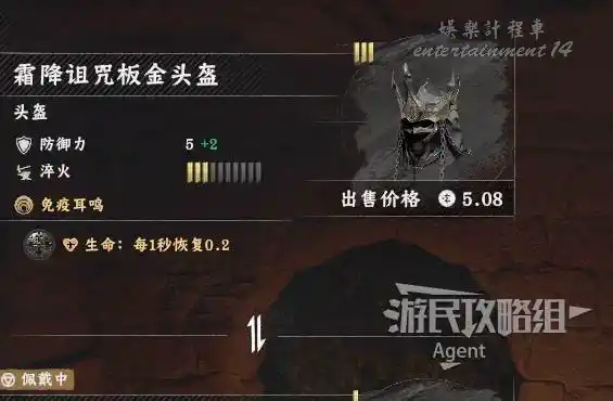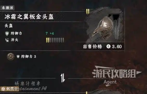在德梅尼斯北面的故事岩,在下圖位置鑽進藤蔓遮掩的洞,開寶箱拿到【霜降詛咒板金頭盔】。