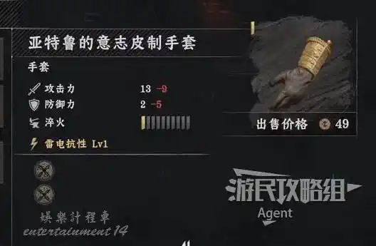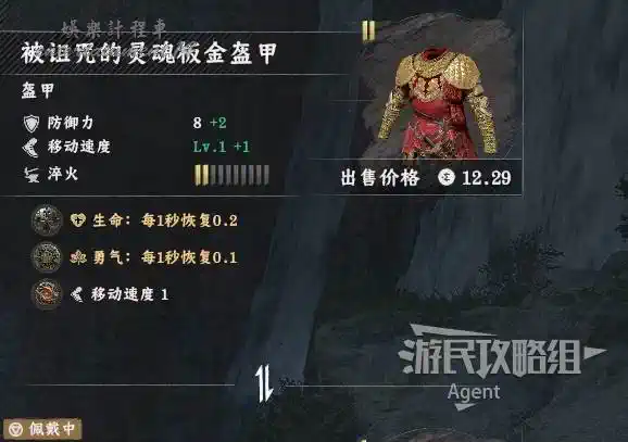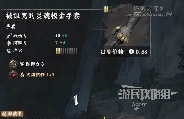 在德梅尼斯西面下圖位置,用勁法凝神打碎石塊,進洞開寶箱拿到【被詛咒的靈魂板金手套】。