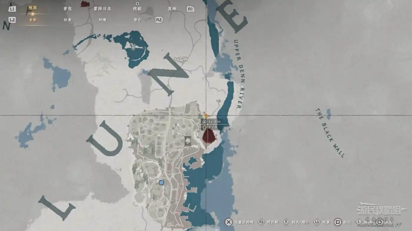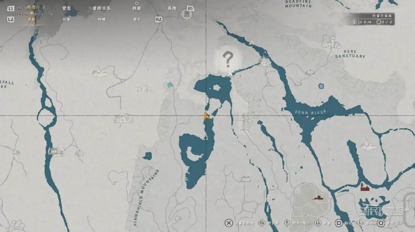 在德梅尼斯北面下圖位置,用刺擊進入瀑布後面的洞窟,用勁法打碎石塊,開寶箱拿到【霜降詛咒板金盔甲】。