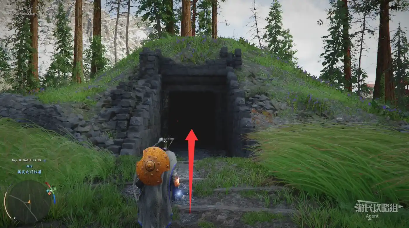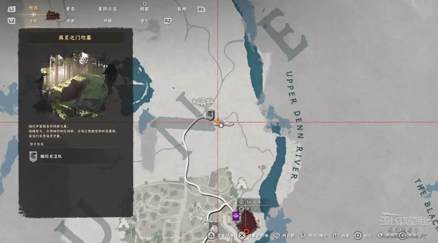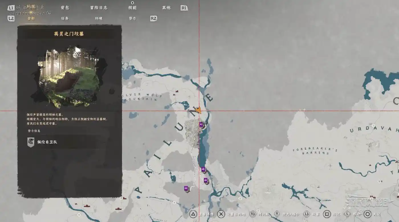 在佩倫下圖位置的英靈之門墳墓裡,鑽進右側牆洞,開寶箱拿到【君子之弓】。