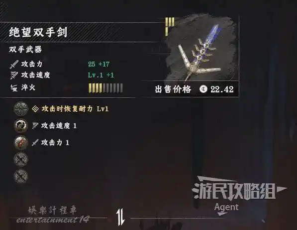 進門後,樓梯底部開寶箱拿到【絕望雙手劍】。