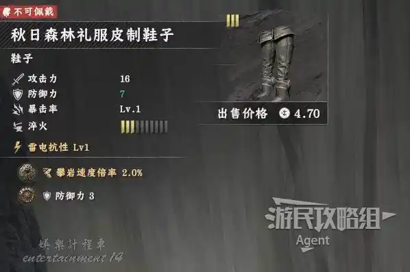 在德梅尼斯北面下圖位置,用刺擊進入瀑布後面的洞窟,開寶箱拿到【秋日森林禮服皮制鞋子】。
