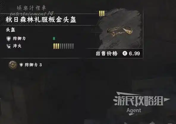 在德梅尼斯下圖位置,舉劍聚光燒掉藤蔓,開寶箱拿到【秋日森林禮服板金頭盔】。
