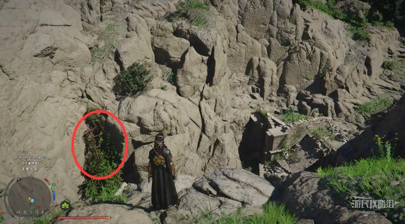 在埃爾南德下圖位置的山崖峭壁上有個洞,洞口有敵人守衛。