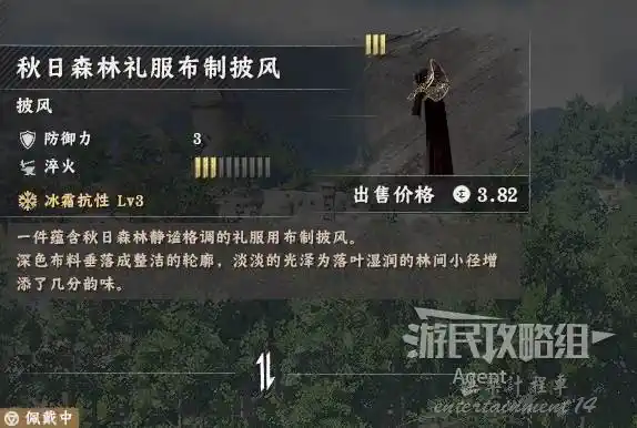 在德梅尼斯下圖位置,到教堂房頂,高塔牆上有隱藏的門,推開門進去,開寶箱拿到【秋日森林禮服布制披風】。