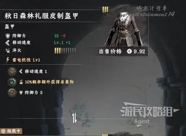 在德梅尼斯北面下圖位置,點燃門口的兩個燈籠開門,進去開寶箱拿到【秋日森林禮服皮制盔甲】。