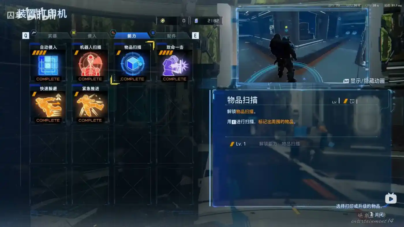 其次是能力欄中的物品掃描、致命一擊、自動入侵都是比較重要的。