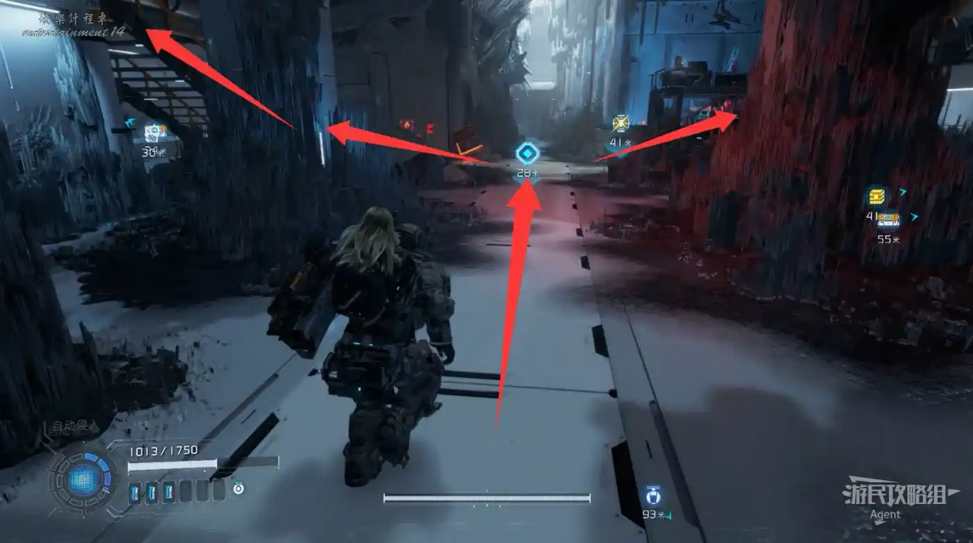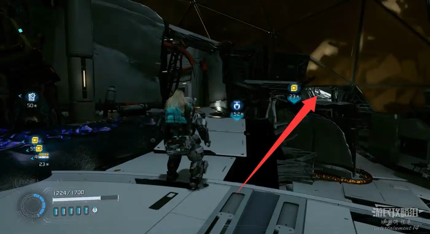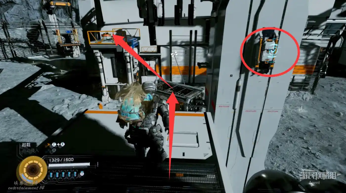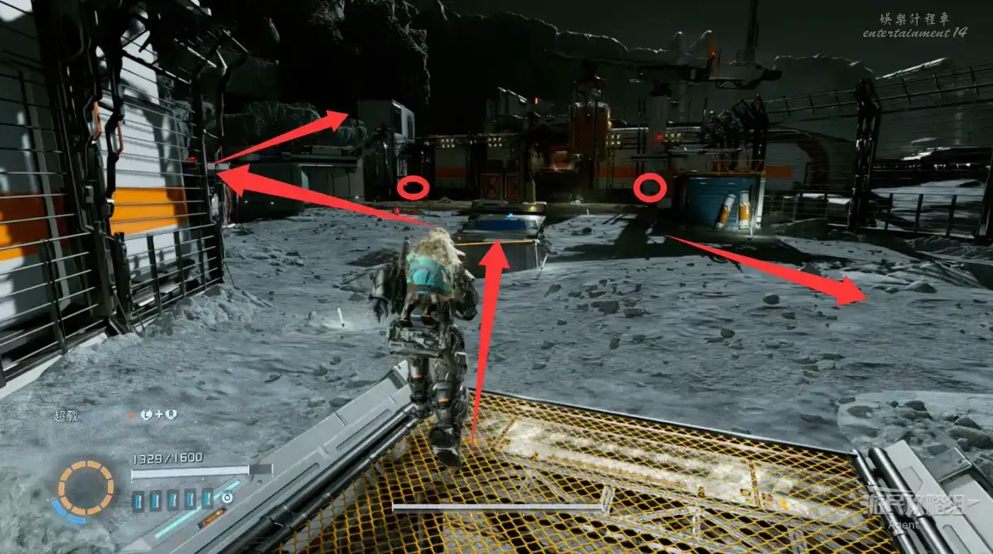 傳送點兩個逃生網站都可以,掃描確定位置,清除紅色障礙物拿到【保險箱】,然後破解升降平臺上去拿到【純月礦】。