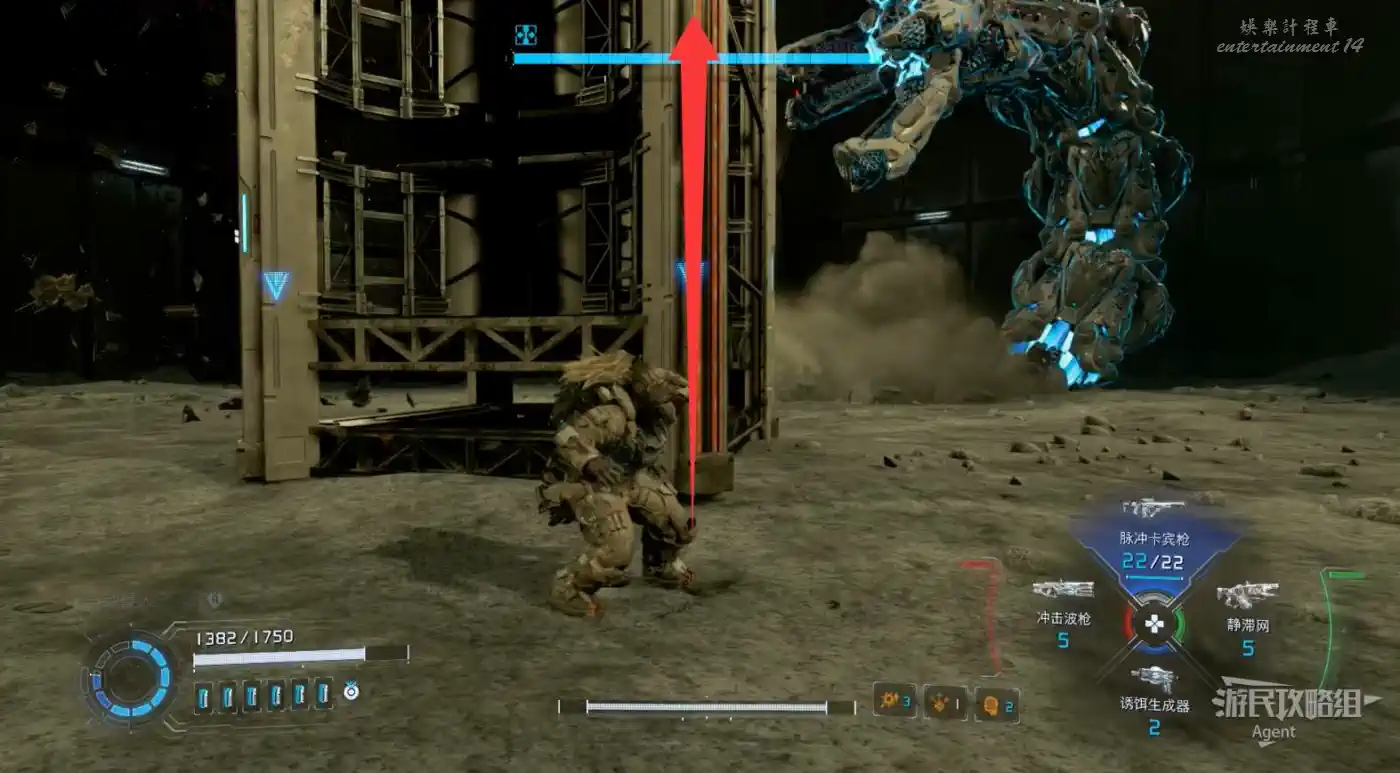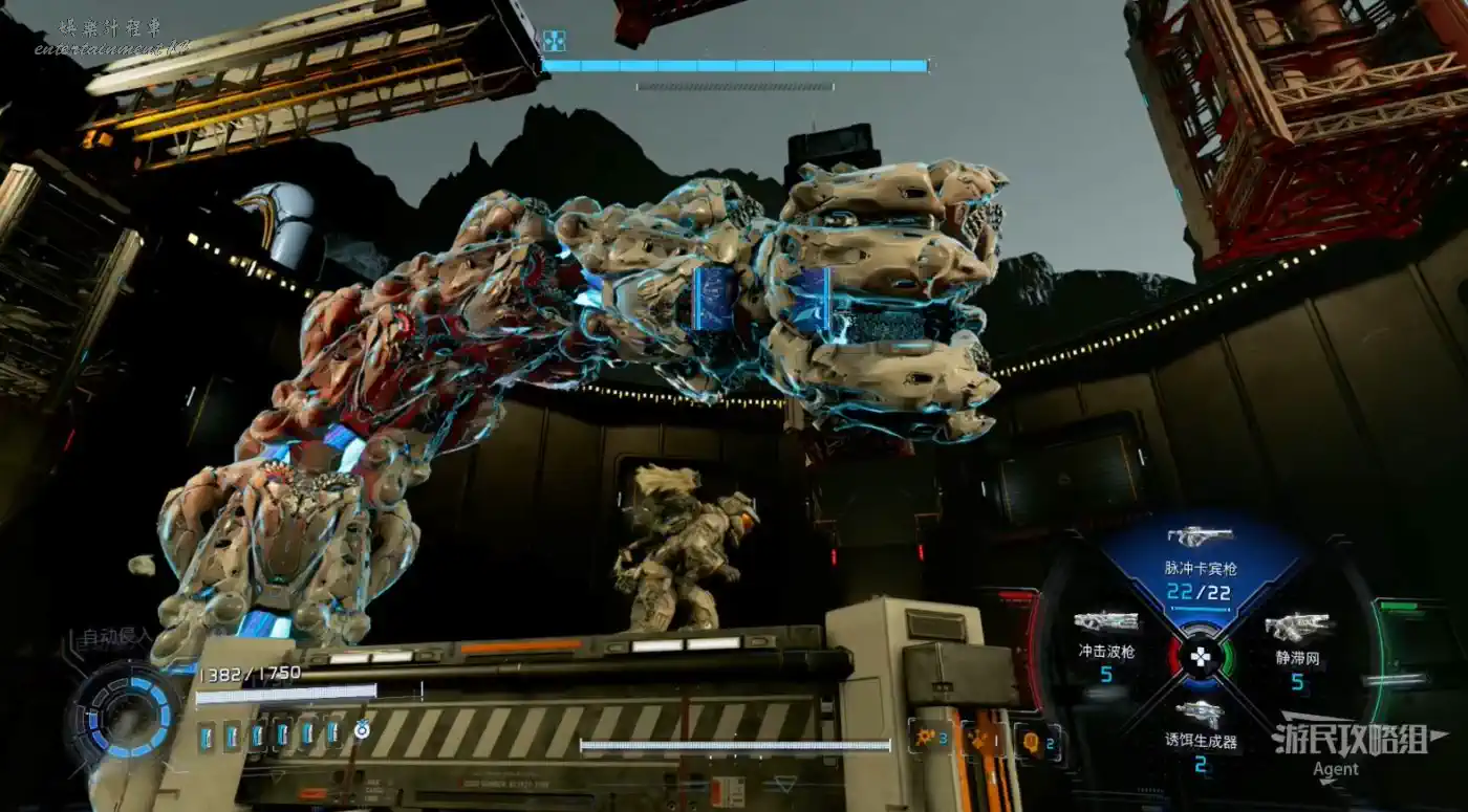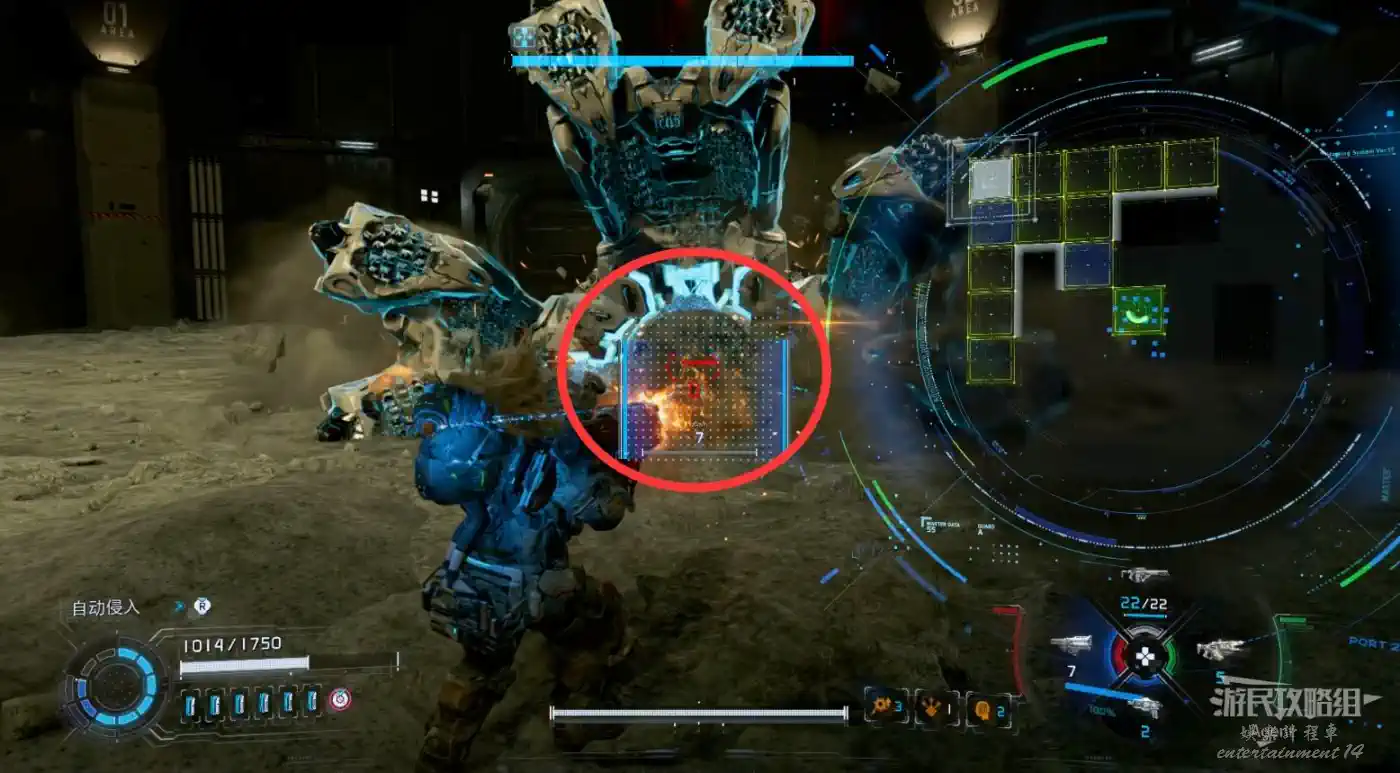 它背後的罐子是弱點,破解成功後猛攻這裡。用衝擊波槍最好靠近一些威力更強。