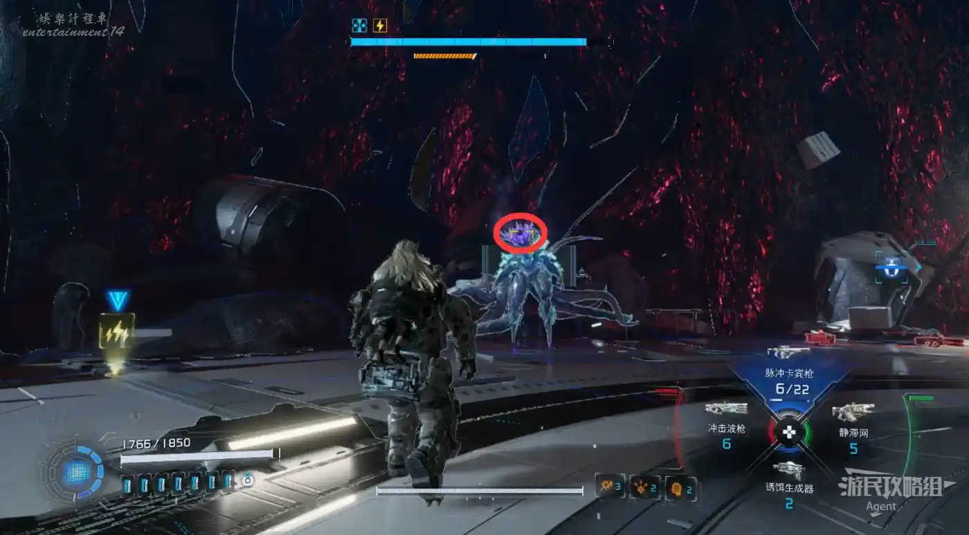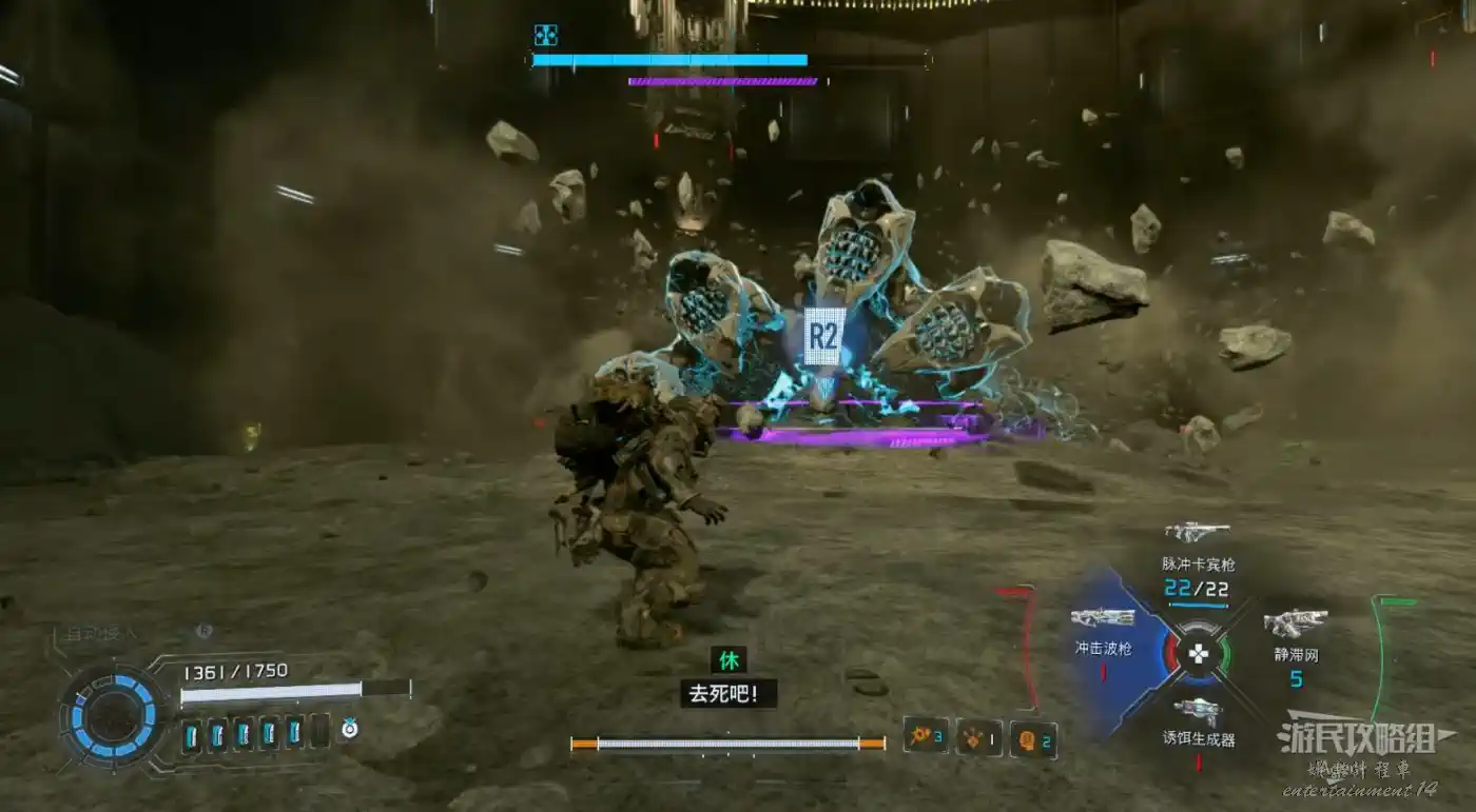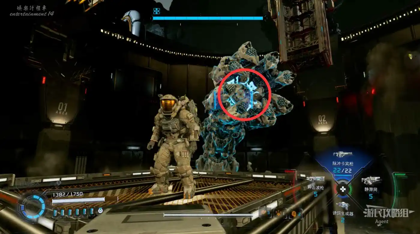 它背後的罐子是弱點,破解成功後猛攻這裡。用衝擊波槍最好靠近一些威力更強。