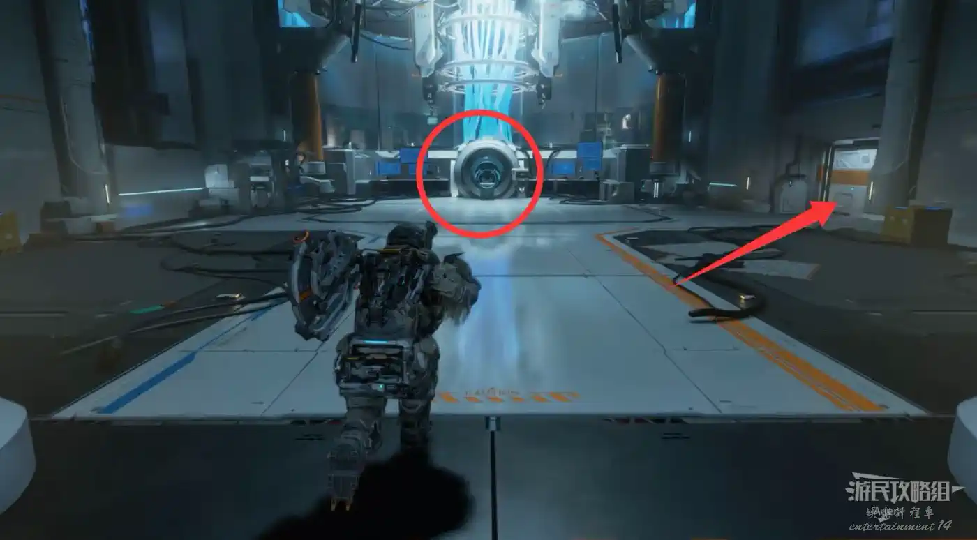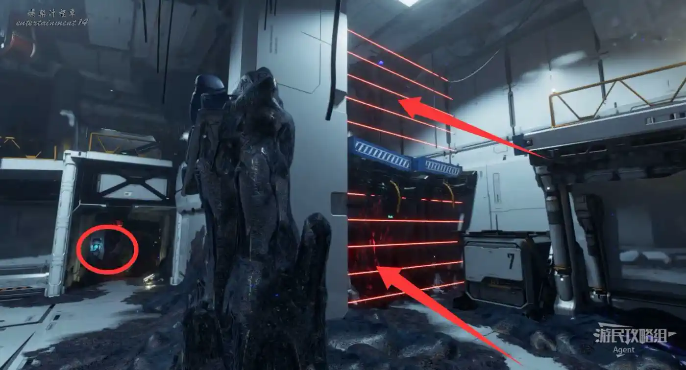 關閉鐳射後,先摧毀紅色障礙物,進去拿到【模組】。