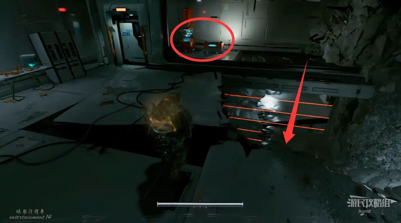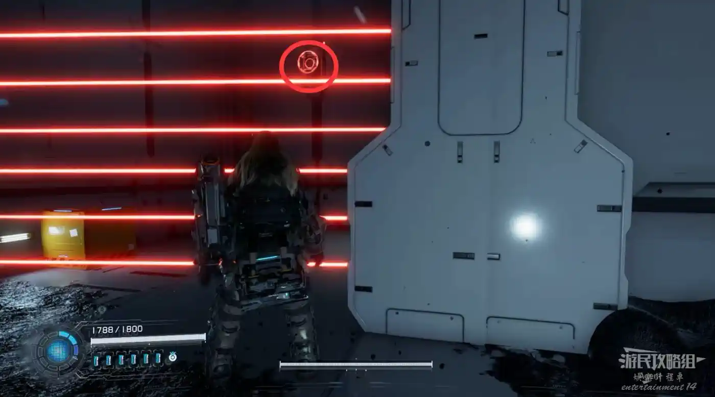 過橋後可通過破解關閉鐳射,注意下圖右邊的鐳射也會關閉,解鎖隱藏的區域。不過敵人較多,等下再去探索。