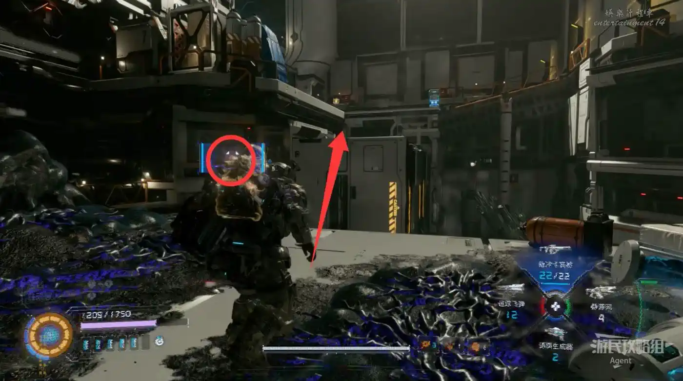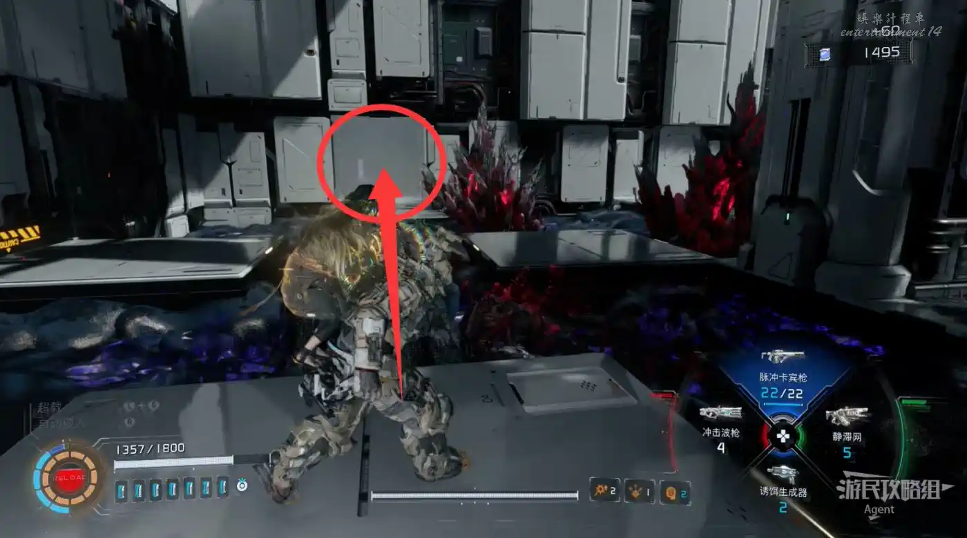 消滅敵人後抬頭看,破解天花板上的紅圈。