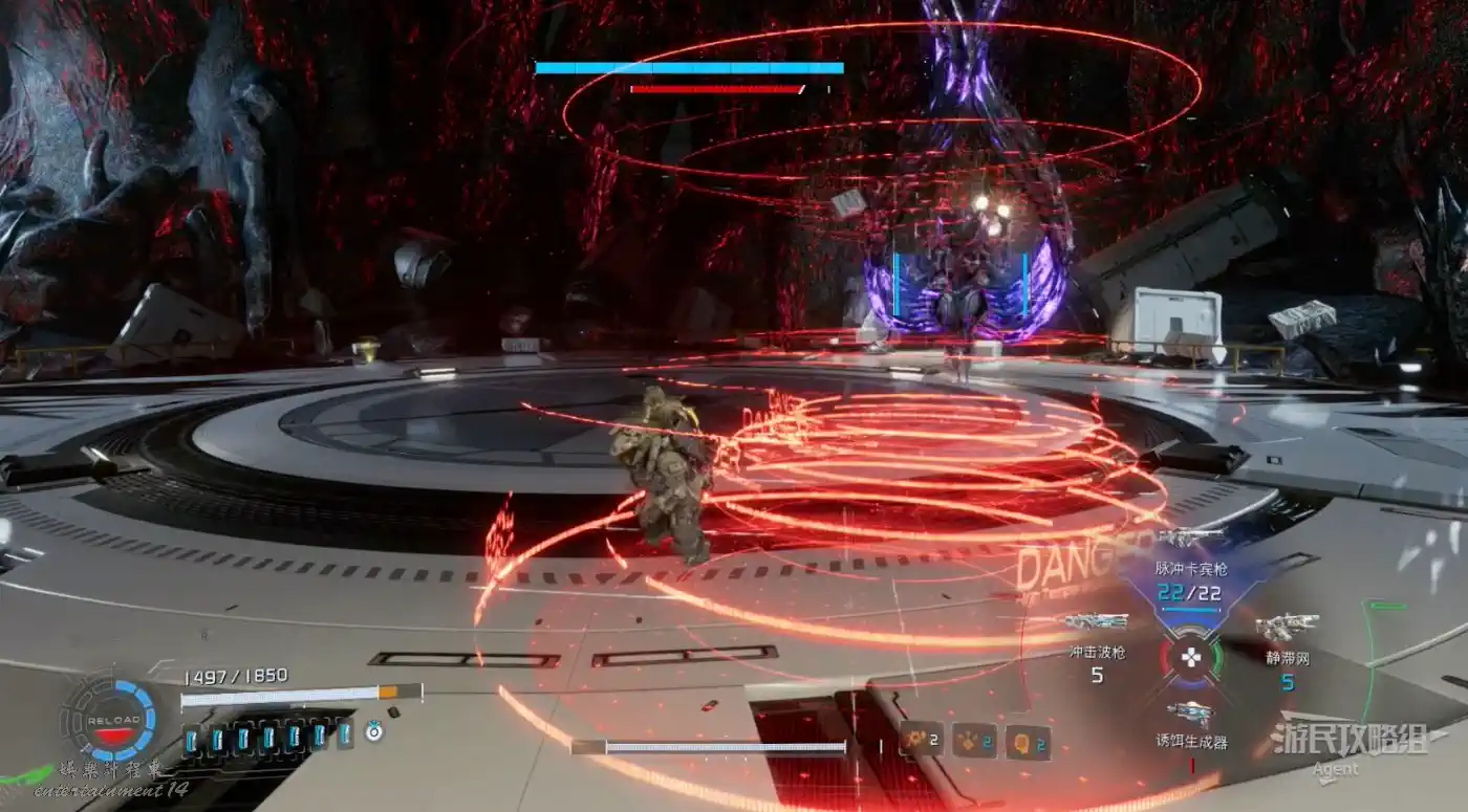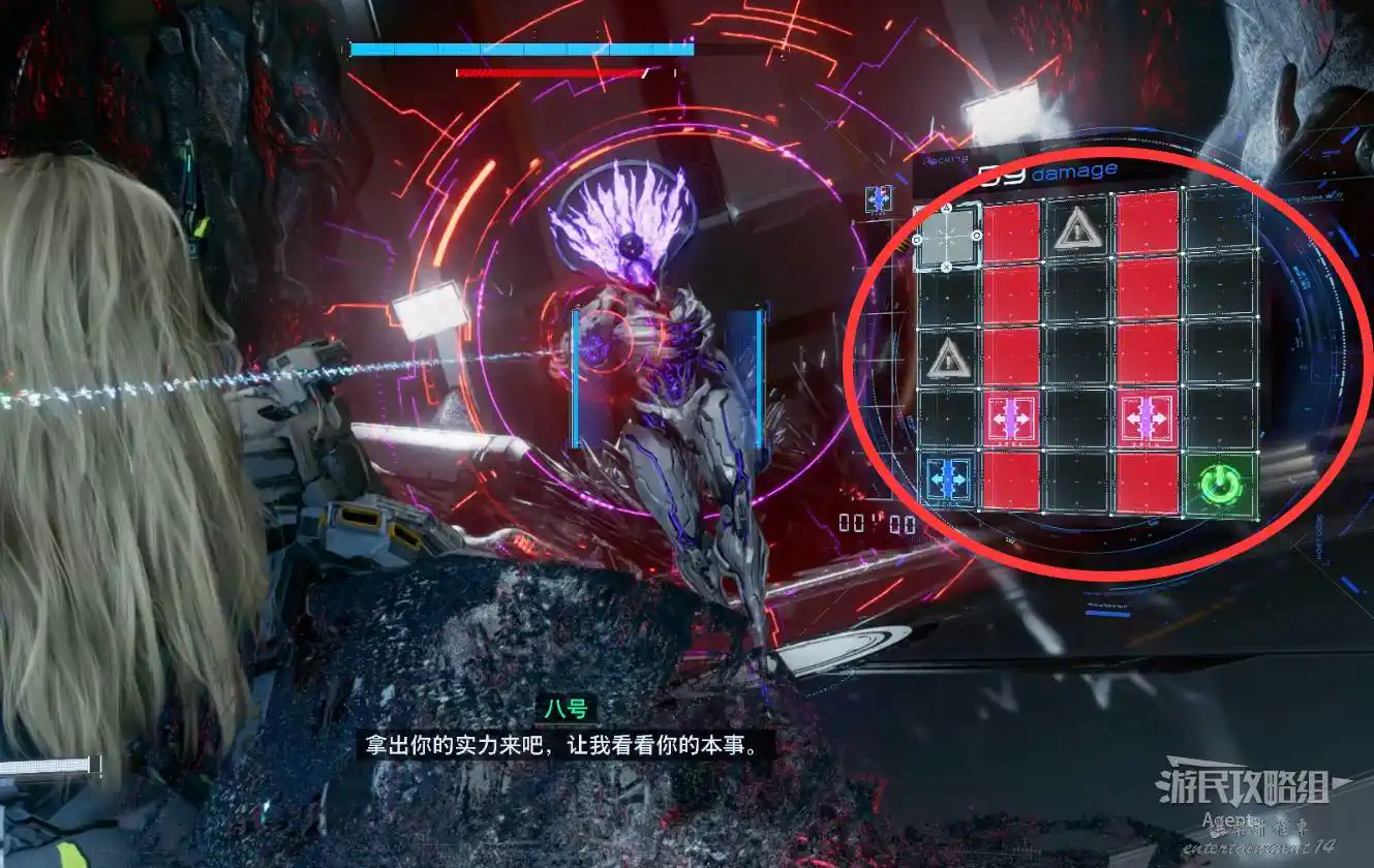 先用靜滯網定住BOSS,然後破解,注意盡可能多地連接藍色節點以延長破解狀態的維持時間,同時連接黃色節點降低它的防禦力。