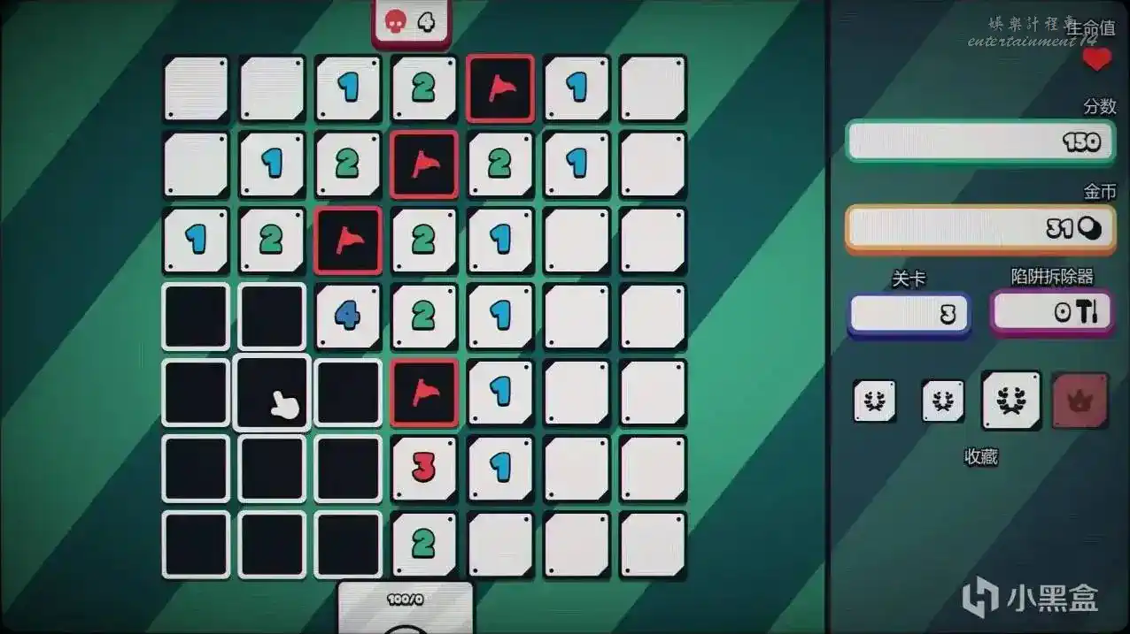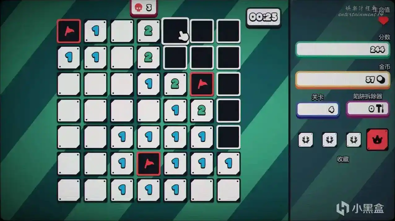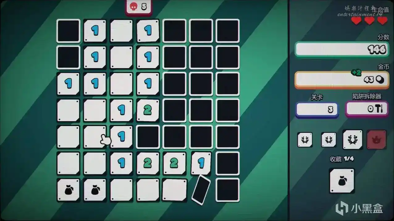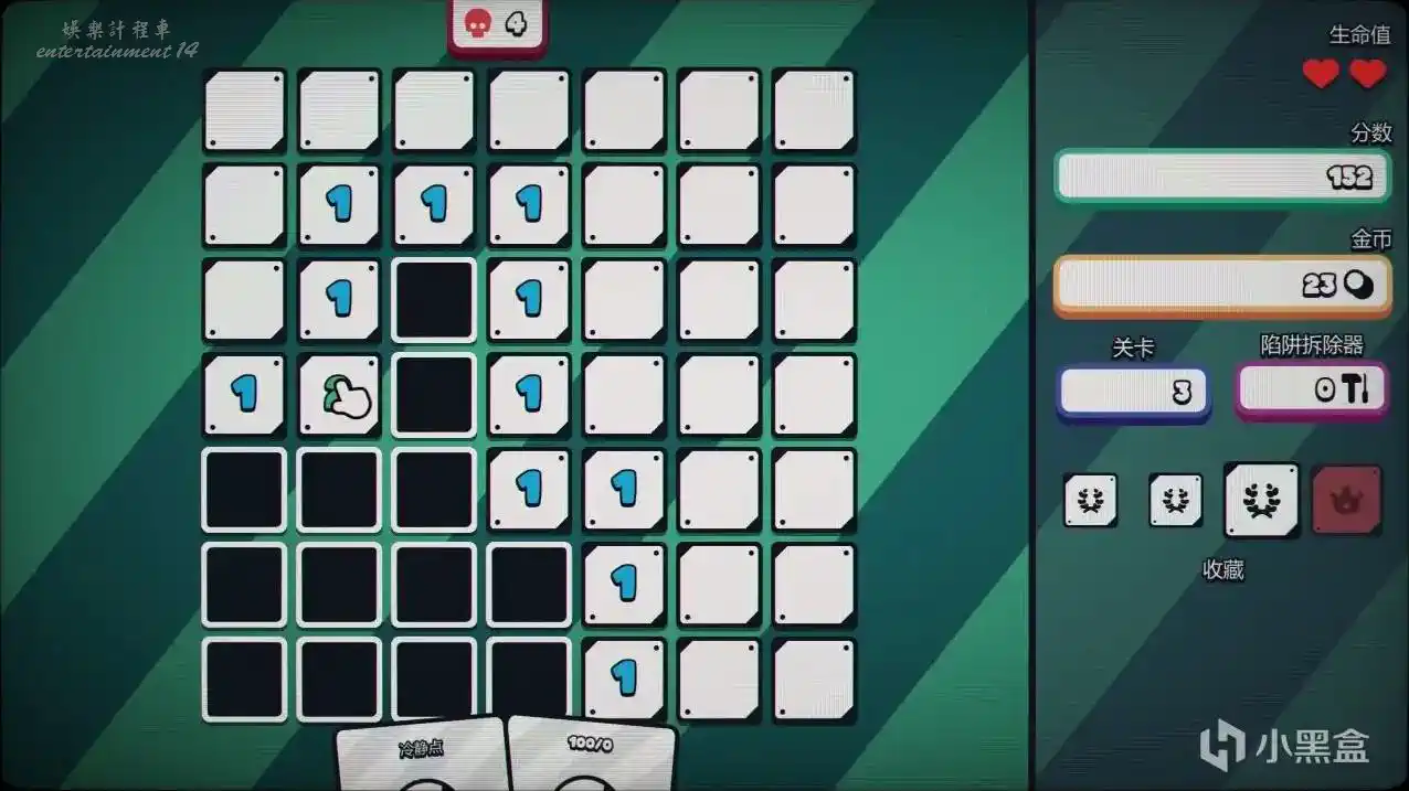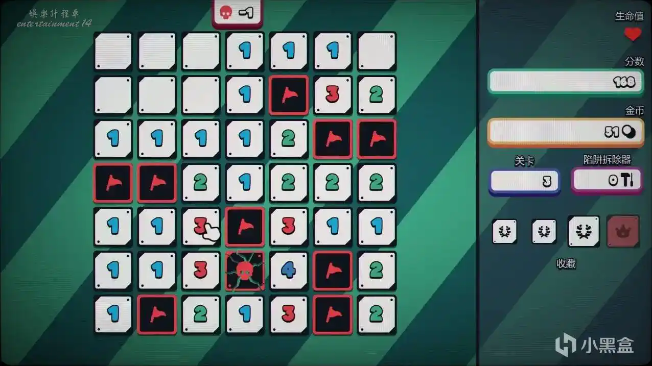 傳統掃雷裡最讓人崩潰的二選一死局,你遇到的時候只能閉眼猜。但在這裡,你反手就是一張卡牌將暗雷看穿! 遊戲還提供了另外幾種流派。比如你可以支付生命值來強行打開一半的地雷,但每關都能獲得額外的生命值,血條管夠。並且這款遊戲一次失誤不會讓你直接重來,你每次開始都能有三條命試錯。