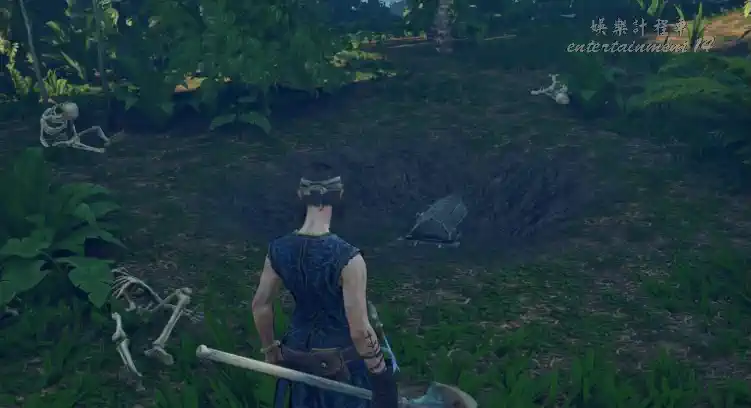 挖掘:在骷髏堆中央的地面使用鏟子挖掘,寶箱會破土而出