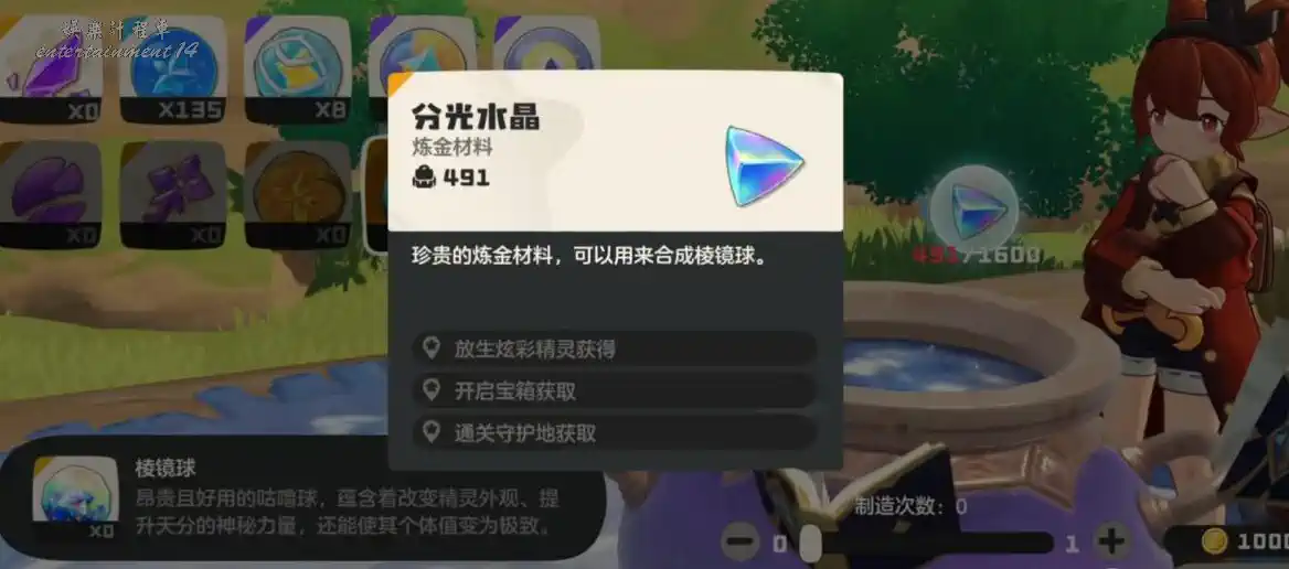 確認材料充足,點擊合成即可獲得1顆棱鏡球
