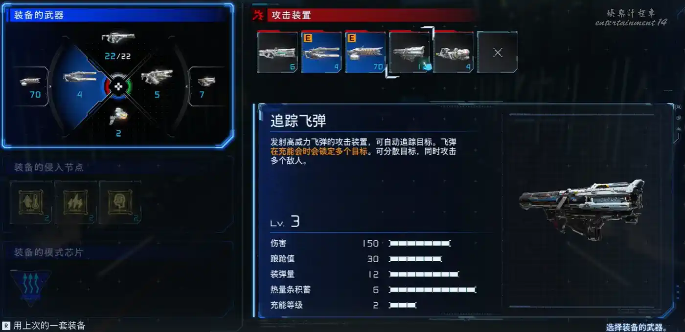 優點:自動追蹤目標,充能後能鎖定多個敵人,打天上的無人機、飛行敵人特別省心。