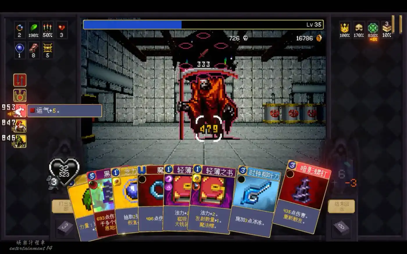詐靈的數值不是很高,400+%的力量,30不到的發射數量灌了4次螺釘就死了