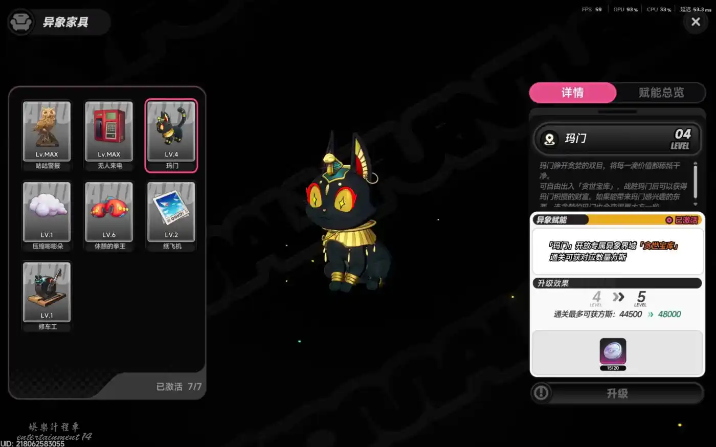 之後去到房產開啟並升級異象傢俱瑪門