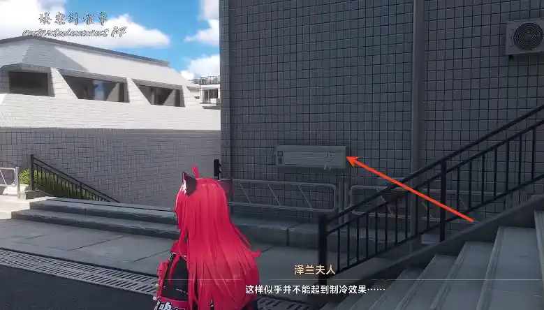 位置:前行下樓梯,右側牆上的倒置空調外機
