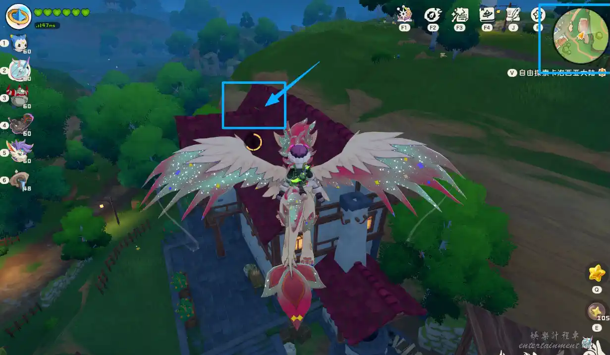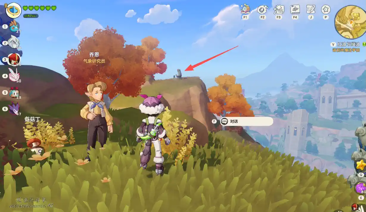2、接著飛到對面山上即可找到天氣石像。