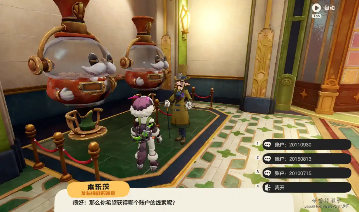 3、來到銀行櫃台,跟櫃台小姐對話。有三個帳戶帳戶和對應密碼分別是: