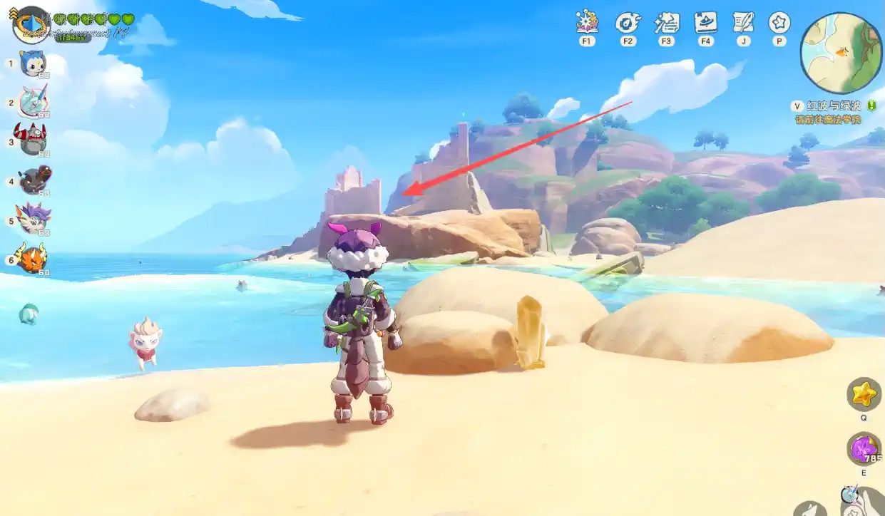 1、從這個缺口游進海濱遺跡,
