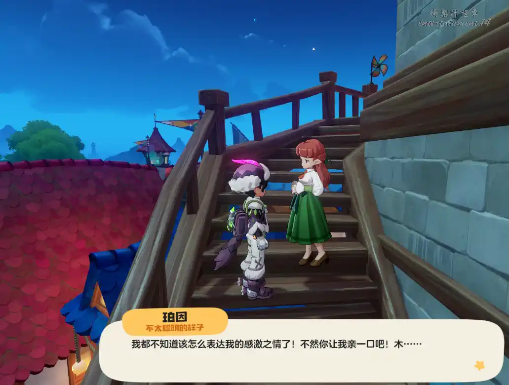 七張卷軸都收集完後回到塔樓找“珀因”交付任務,會獲得美少女的香吻。