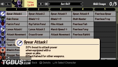 裝備長矛lance時攻擊力+30%