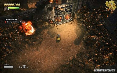 打破拉礦車,繼續向前開,前方小心敵人炮臺,穿過前方的噴火區域.